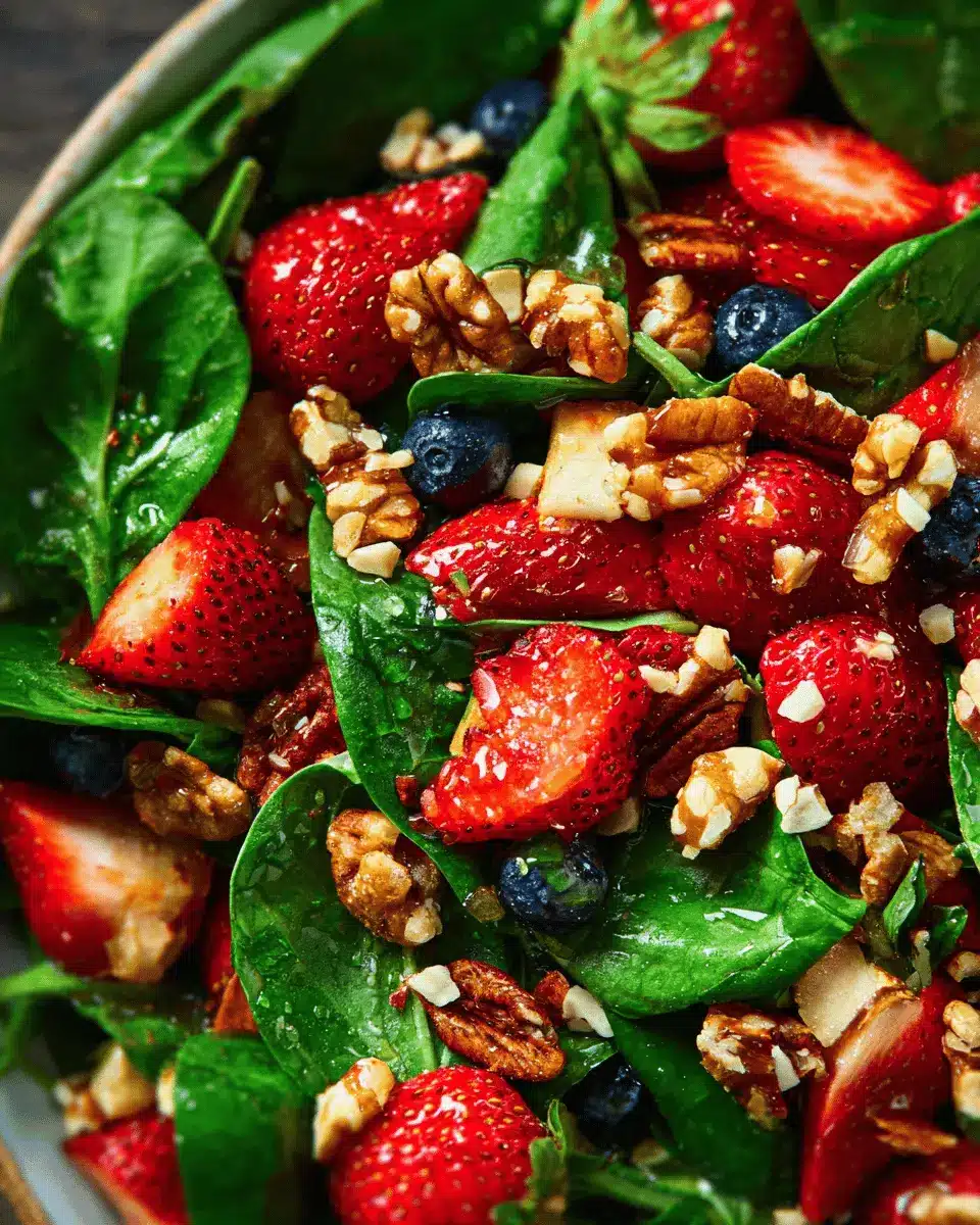 That’s it! You’ve successfully prepared your 15-Minute Strawberry Spinach Salad! This fresh, vibrant dish is not only a feast for your taste buds but also a visual delight. Serve it alongside a protein, or on its own for a light meal—it’s versatile enough for any occasion. Happy salad making!
