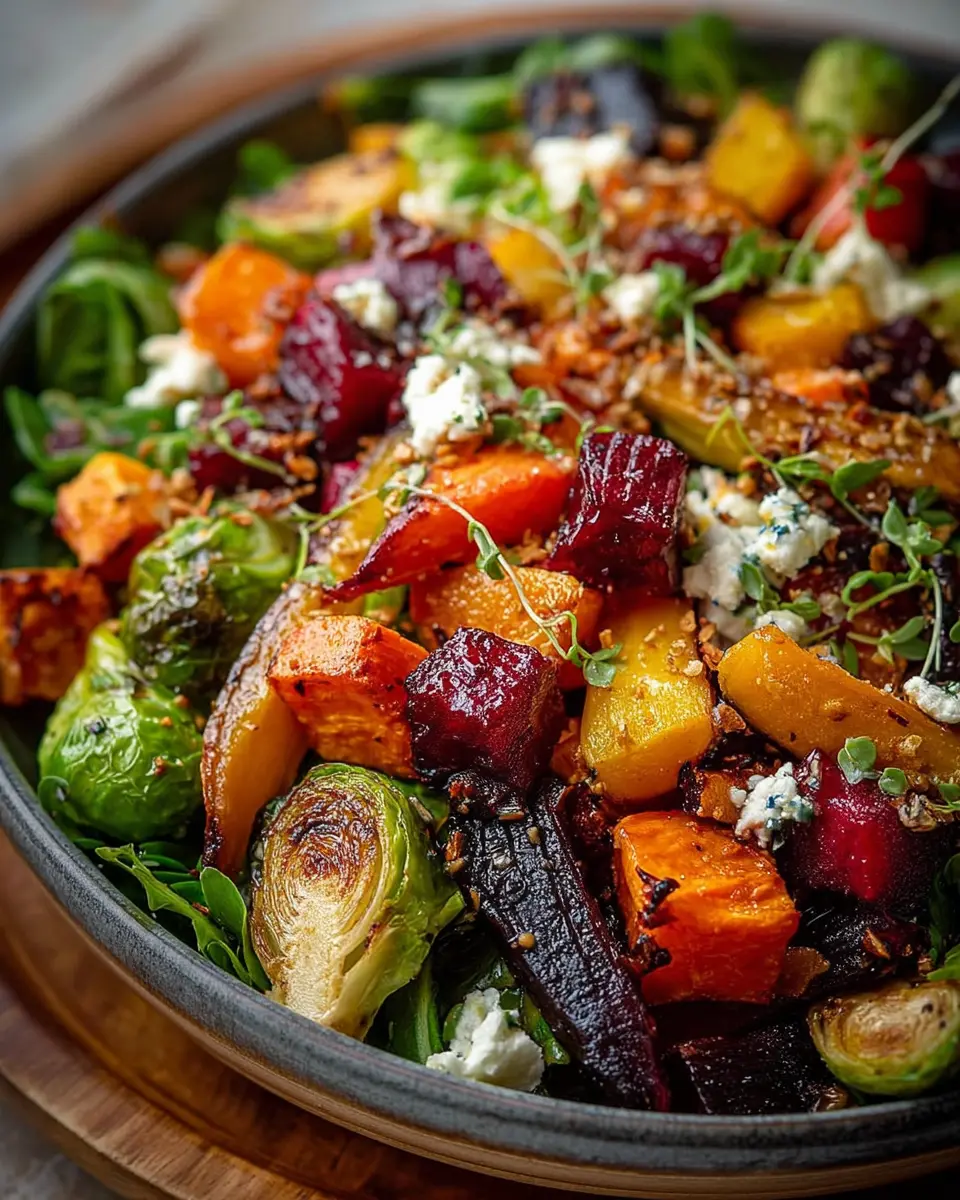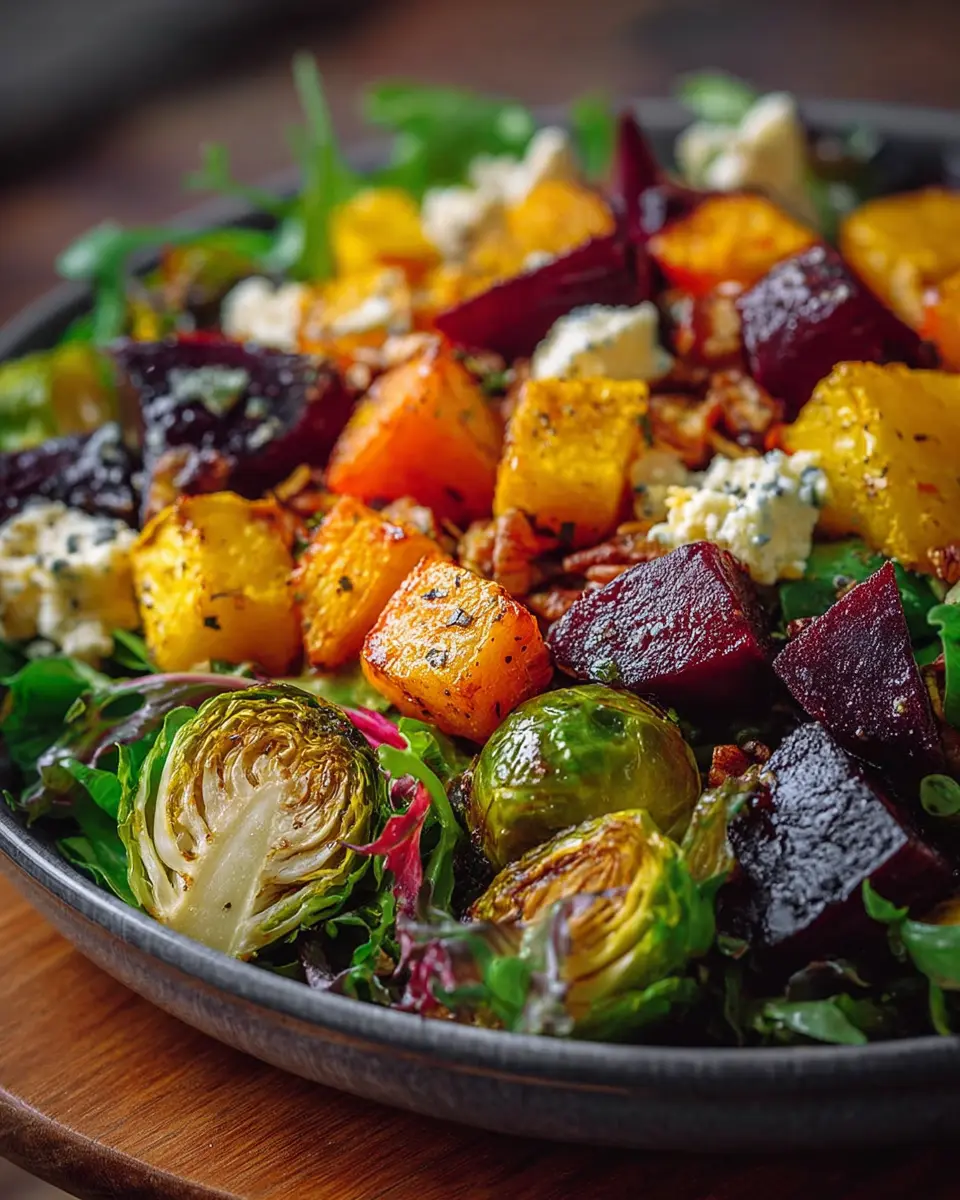 To achieve those beautifully caramelized veggies in your vibrant winter vegetable salad, make sure to cut your butternut squash, Brussels sprouts, and beets into uniform pieces. This ensures even roasting. Don’t overcrowd the baking sheet; give them space to breathe and roast properly. A tip? Flip them halfway through cooking to enhance that golden-brown color!