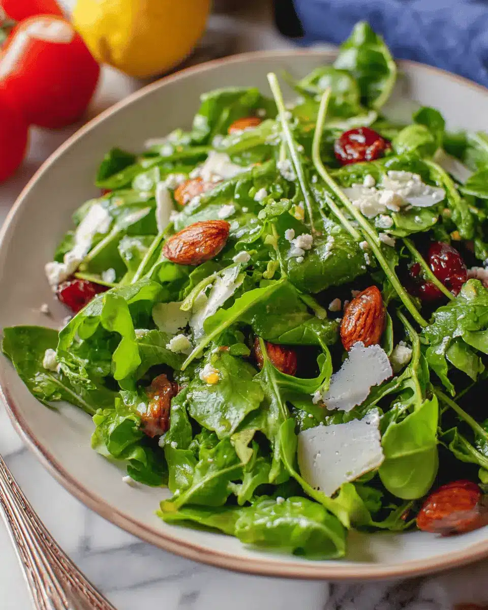 Why not elevate your serving style? Present your arugula salad with lemon vinaigrette in individual mason jars for a fun, portable option, perfect for lunch on the go. You can also use it as a colorful bed for roasted veggies or grilled proteins. For a chic buffet, place it in a large bowl with extra lemon vinaigrette on the side to allow your guests to customize. Plus, sprinkle some nuts or seeds on top for an added crunch and texture. Don’t forget to try it as a topping for a flatbread for a delightful twist!