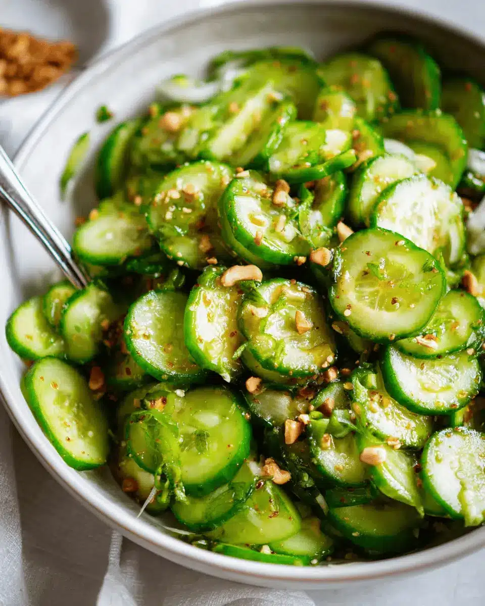 This Asian Cucumber Salad offers a delightful blend of flavors and textures, making it perfect for any occasion. Its refreshing crunch, paired with the sweetness of honey-roasted peanuts, creates a dish that’s both satisfying and light. Enjoy it as a side or a quick snack—either way, it’s delicious!