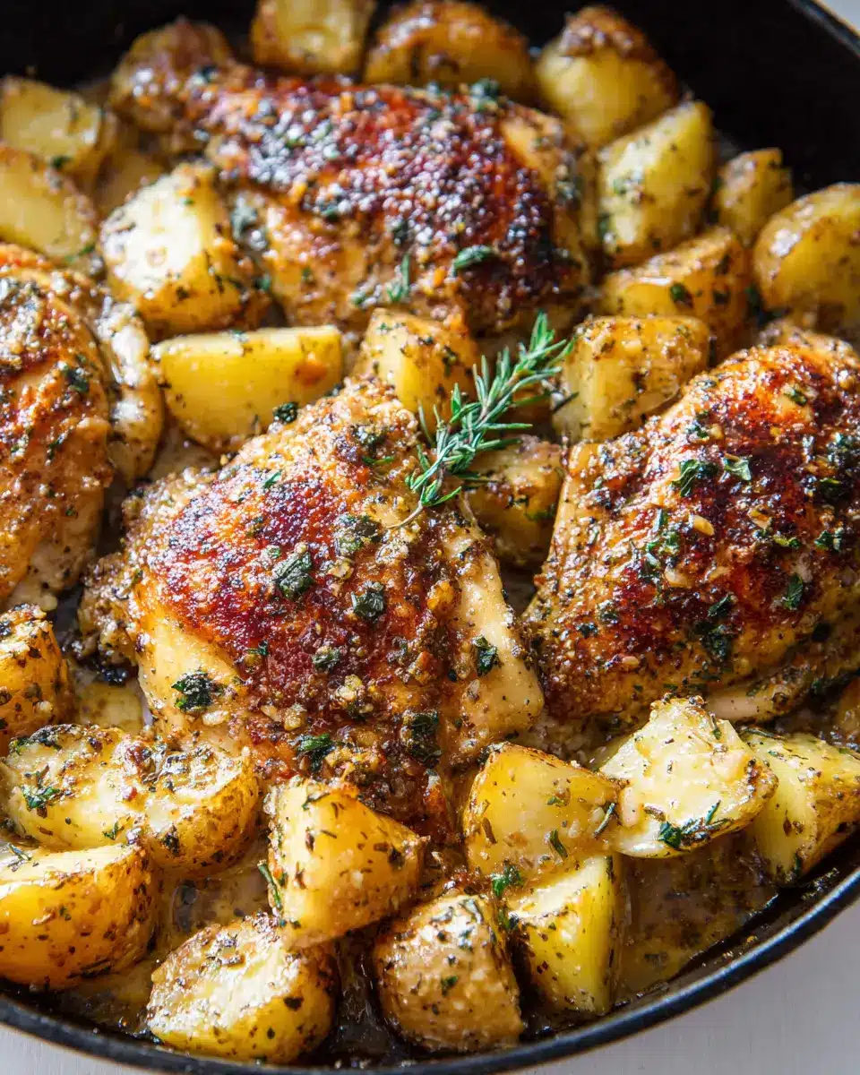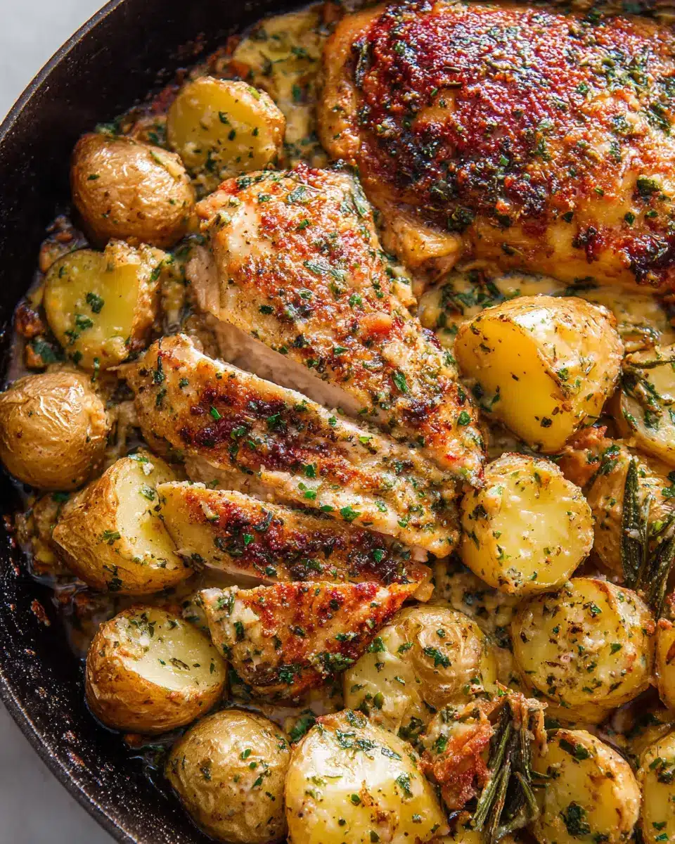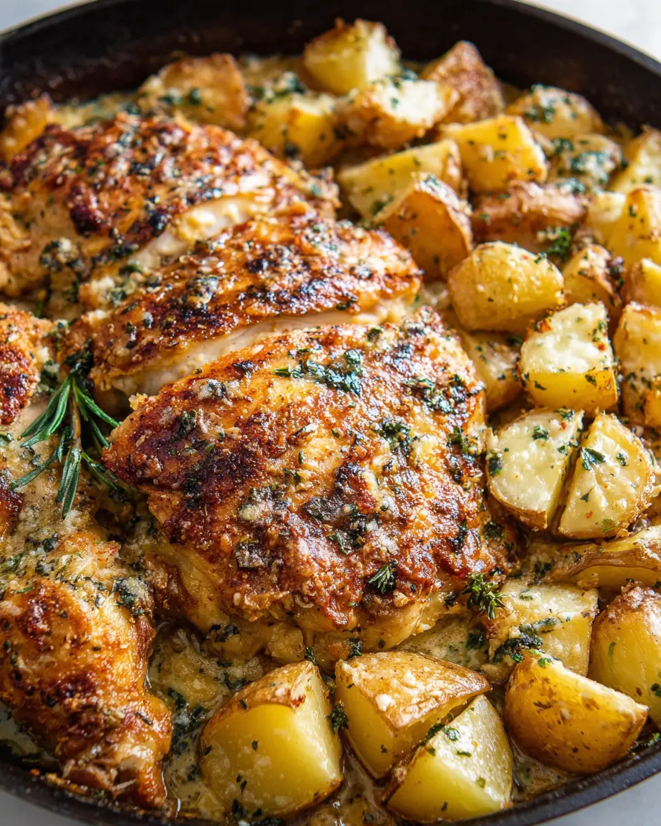 For Baked Garlic Parmesan Chicken & Potatoes with perfectly crispy skin, sear the chicken skin-side down in a hot cast iron skillet for about 3-4 minutes before baking. This step locks in the juices and adds a beautiful golden color. Make sure to pat the chicken skin dry with a paper towel before seasoning—moisture is the enemy of crispiness!