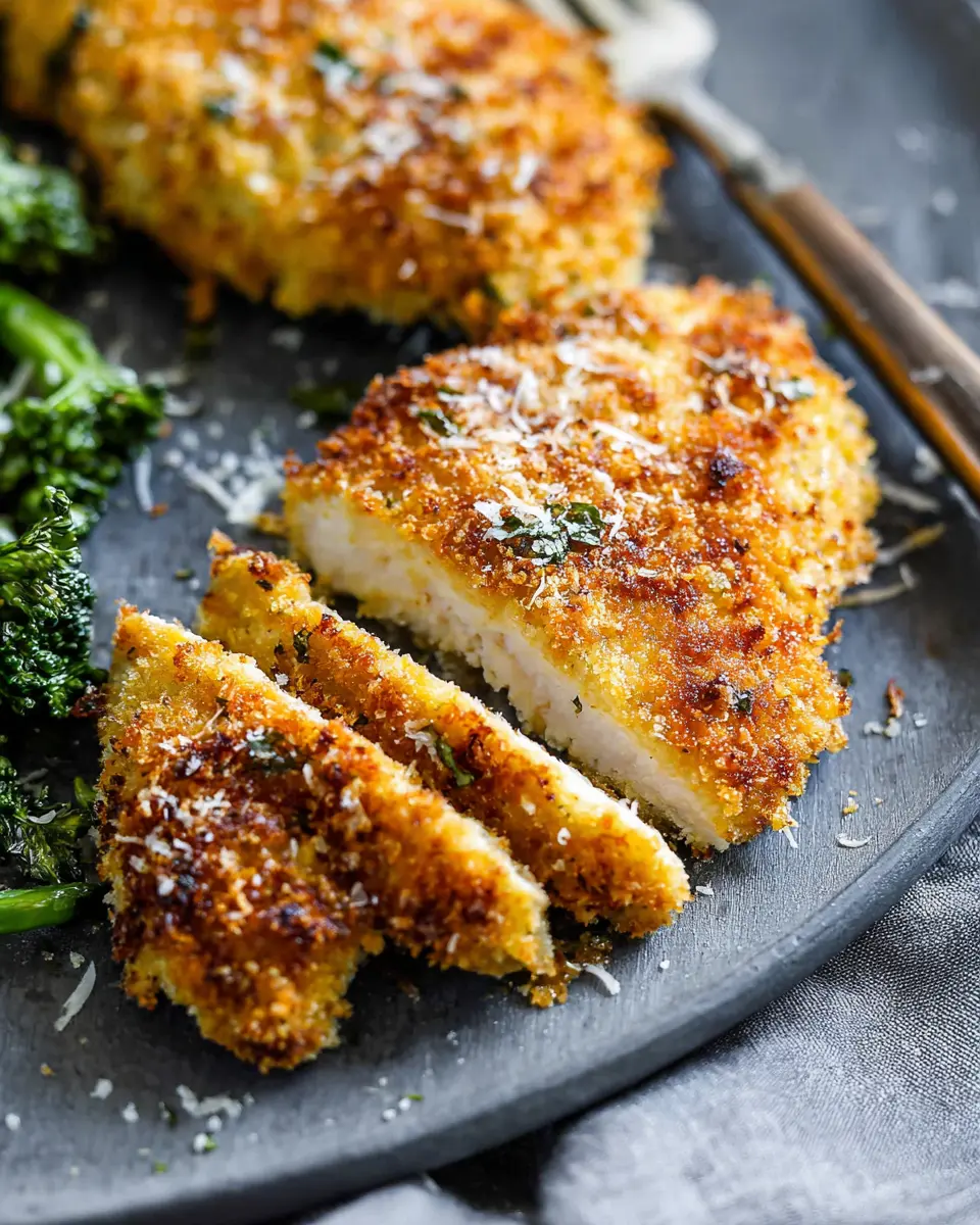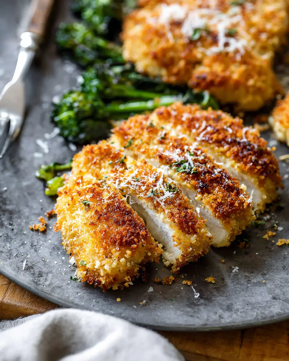 Want to make your baked parmesan crusted chicken the star of the show? Serve it over a bed of creamy garlic risotto for an upscale twist. Or, slice the chicken and layer it on a charcuterie board alongside olives, sundried tomatoes, and cheese for an inviting appetizer. You could even drizzle a balsamic reduction over the chicken for an elegant touch. These simple ideas will make your dinner memorable and keep your guests coming back for more!