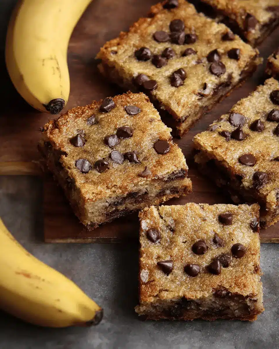 To keep your banana chocolate chip bars fresh and tasty, store them in an airtight container. They can be kept at room temperature for about 3 days, or you can refrigerate them for up to a week. Want to enjoy them later? Simply freeze them! Wrap bars individually in plastic wrap and place them in a freezer-safe bag for up to three months.