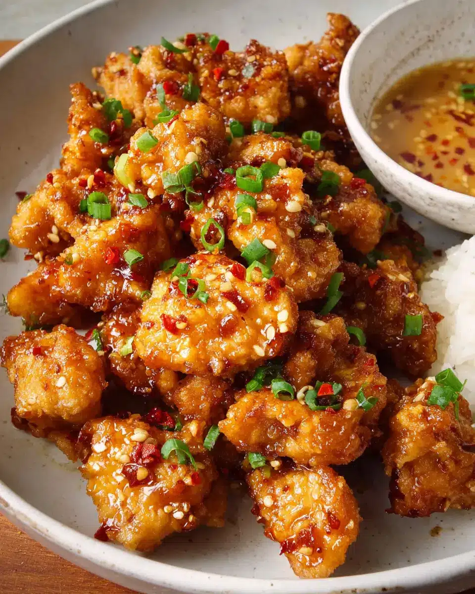 Ready to dive into the delicious world of Bang Bang Chicken? This dish is a delightful combination of crispy chicken pieces coated in a creamy and spicy sauce. Let’s walk through the preparation step by step to guarantee you end up with a plate that’s both stunning and scrumptious.