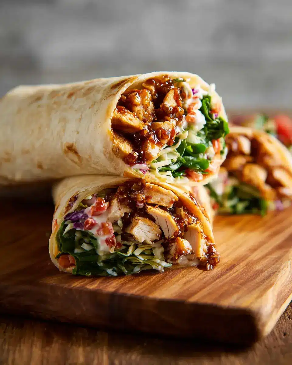 Cut your assembled wraps in half for easy handling, and voila! You’ve got tasty, homemade BBQ chicken wraps ready to devour. Serve them up with extra BBQ sauce on the side for dipping because who doesn’t love a little extra sauce? Enjoy!
