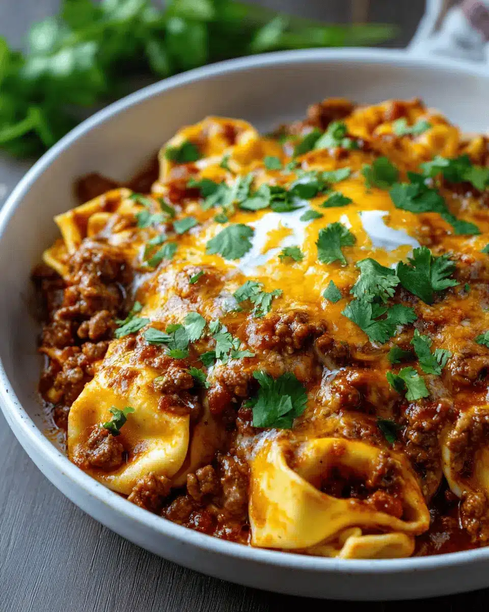 Once ready, serve with sliced green onions and fresh cilantro for a burst of freshness. Your beef enchilada tortellini is not just a meal; it’s a comforting hug in a bowl! Enjoy, and feel free to share your cooking experience with friends!