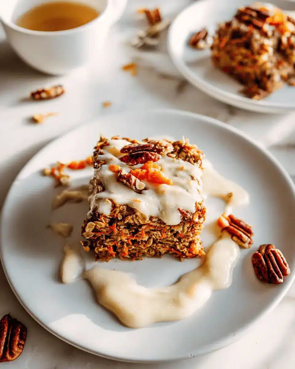 Once baked, let it cool for a few minutes before serving. Drizzle with a cream cheese maple glaze for an authentic carrot cake experience that’s simply unforgettable! Enjoy your carrot cake baked oatmeal as a satisfying breakfast or a sweet treat that feels like dessert.