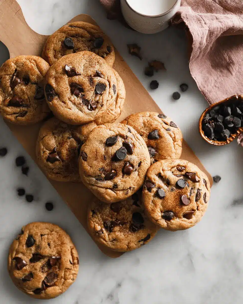 Elevate your chai chocolate chip cookies by presenting them beautifully! Stack a few on a rustic wooden board, garnish with a sprinkle of cinnamon, and place a small bowl of homemade hot chocolate alongside. For special occasions, serve each cookie on a plate drizzled with caramel sauce and a dusting of powdered sugar for a touch of elegance.