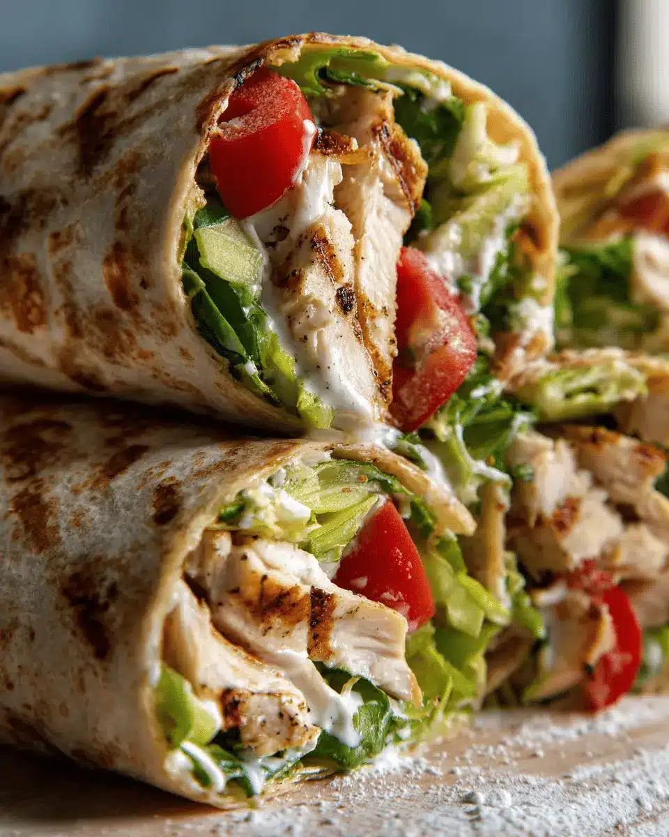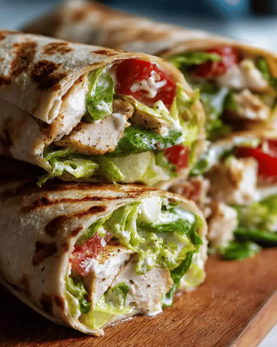 To keep your Chicken Caesar Wraps fresh, wrap them tightly in plastic wrap or store them in an airtight container. Ideally, keep your wraps in the refrigerator and consume them within 1-2 days for the best taste and texture. If you want to keep the ingredients crisp, consider storing the dressing separately and adding it just before eating.