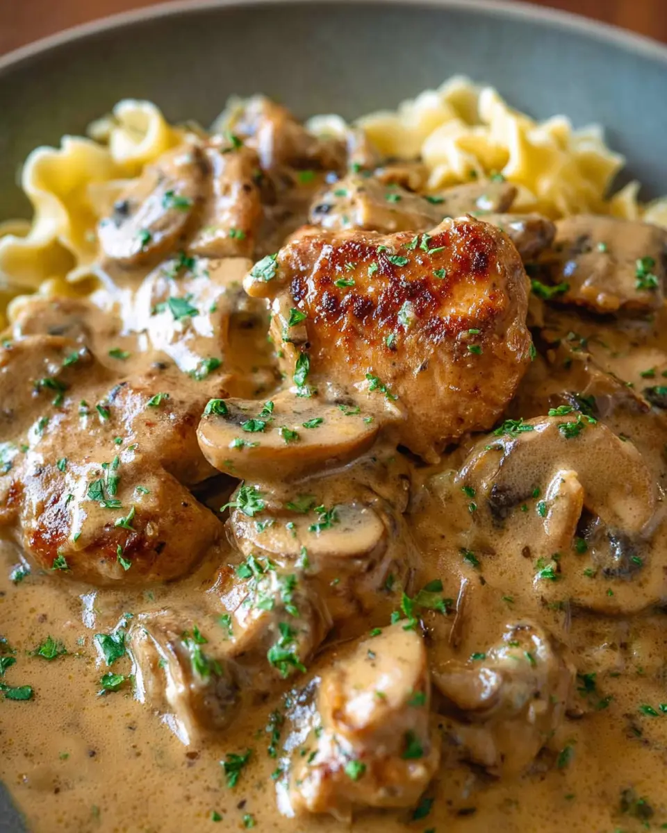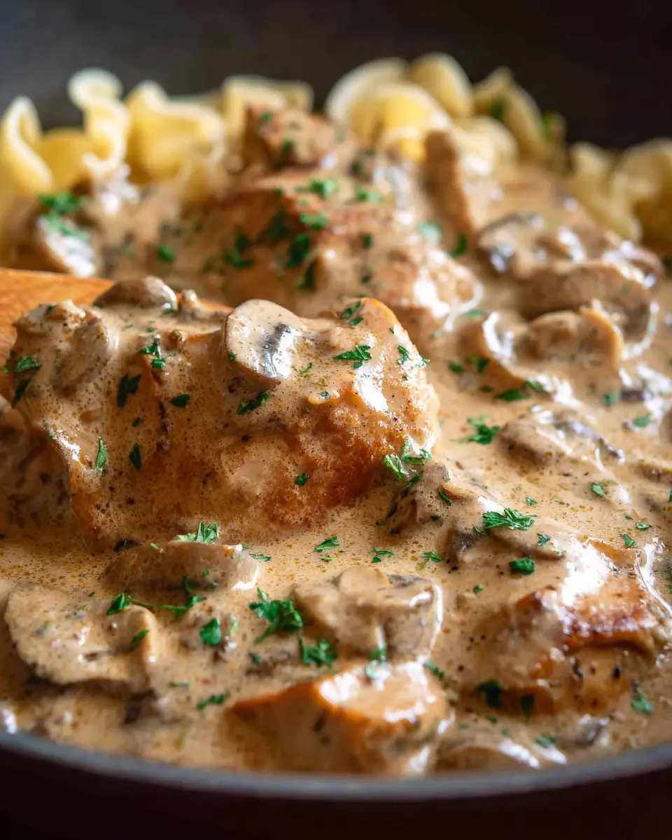 Want to take your Chicken Stroganoff to the next level? Consider adding fresh herbs like parsley or chives for a pop of color and freshness. A pinch of paprika can also add a lovely smokiness, while a hint of lemon juice can lighten up the richness. Don’t forget the perfect side—whether it's pasta, rice, or creamy mashed potatoes—these will soak up all that delightful sauce!