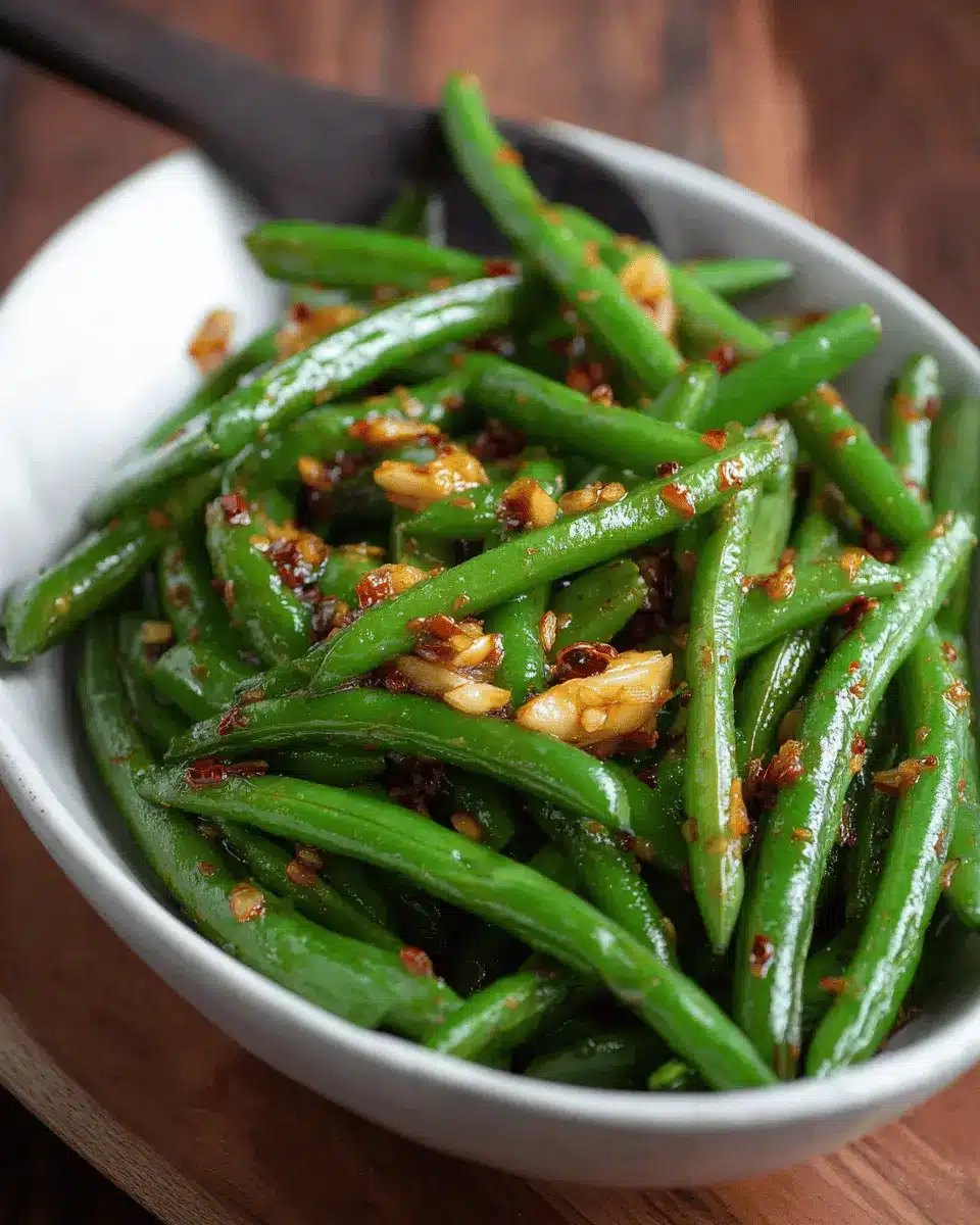 Finally, season your chili garlic green beans with salt and pepper to taste. At this point, feel free to sneak a taste and adjust the seasoning as necessary. Once everything is well combined and heated through, it’s time to serve! These green beans make a vibrant and flavorful side dish for a wide array of meals, from grilled chicken to tofu stir-fry. Enjoy their irresistible crunch and spice—your tastebuds will thank you!