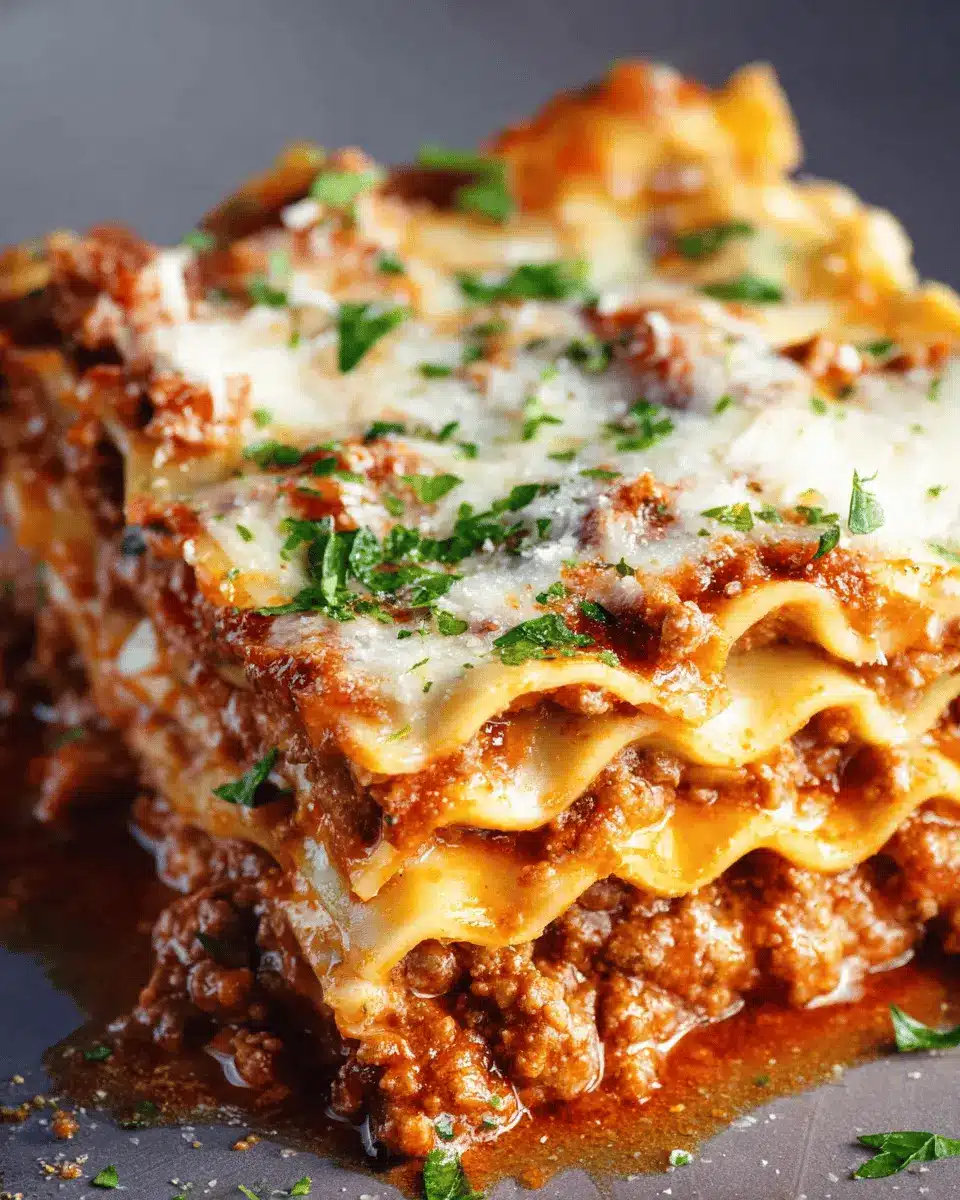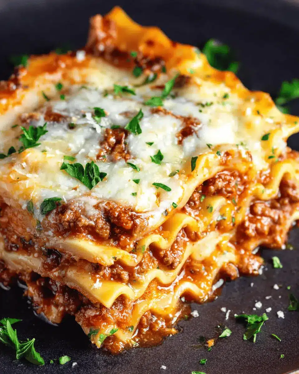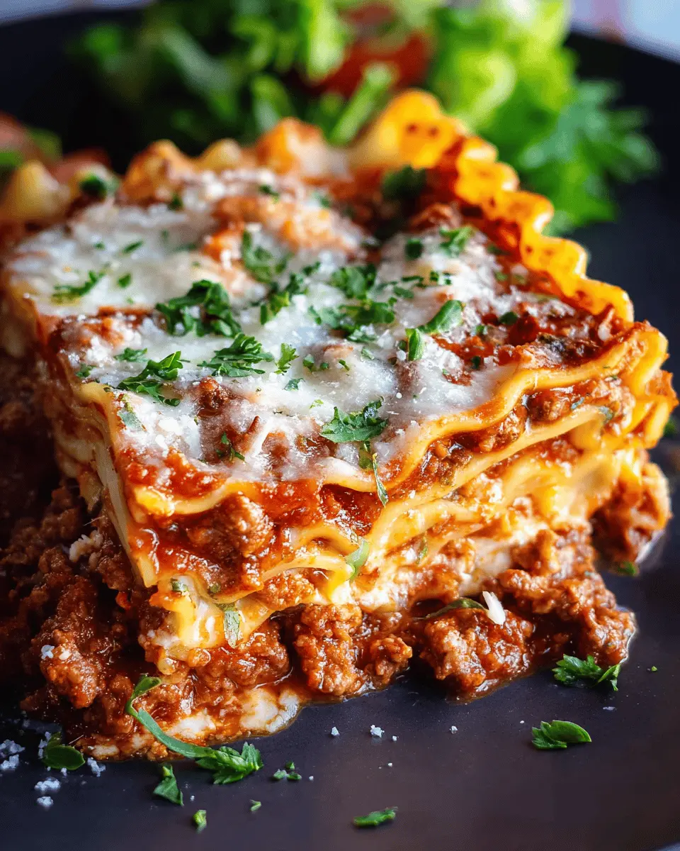 Enjoy this classic beef lasagna recipe with a side salad or garlic bread for a perfect meal!