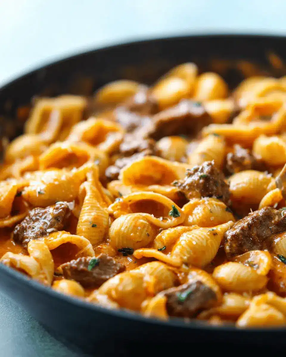 Absolutely! You can prepare creamy beef and shells ahead of time, making it an ideal option for busy weeknights or meal prep. Cook the dish as directed, then let it cool completely before storing it in an airtight container in the refrigerator. It can be stored for up to three days. When you’re ready to enjoy it, just reheat gently on the stovetop or in the microwave, adding a splash of beef stock or water to restore its creamy texture.