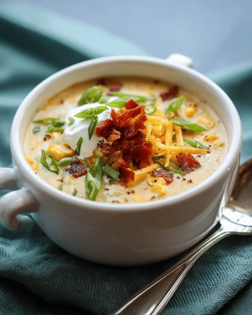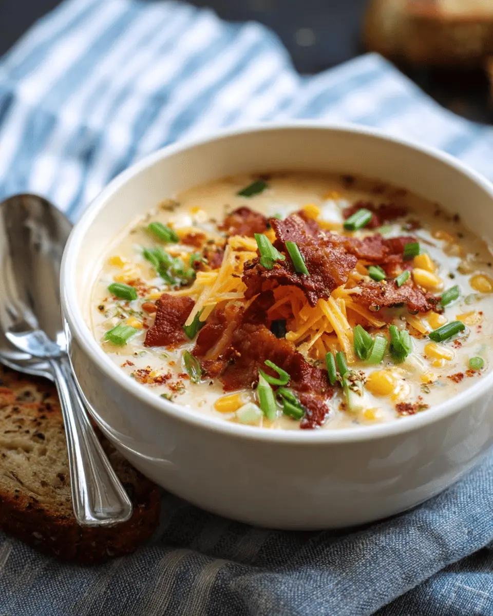 Presentation matters, especially when serving a dish as delightful as creamy corn chowder! Top your chowder with a sprinkle of crumbled turkey bacon for a savory crunch, or go with freshly chopped green onions for a burst of color. A handful of freshly grated cheddar cheese adds both flavor and creaminess, making every bowl irresistible. For a hint of freshness, consider adding a few cilantro or parsley leaves. These simple touches not only look beautiful but also enhance the overall flavor profile of your chowder!