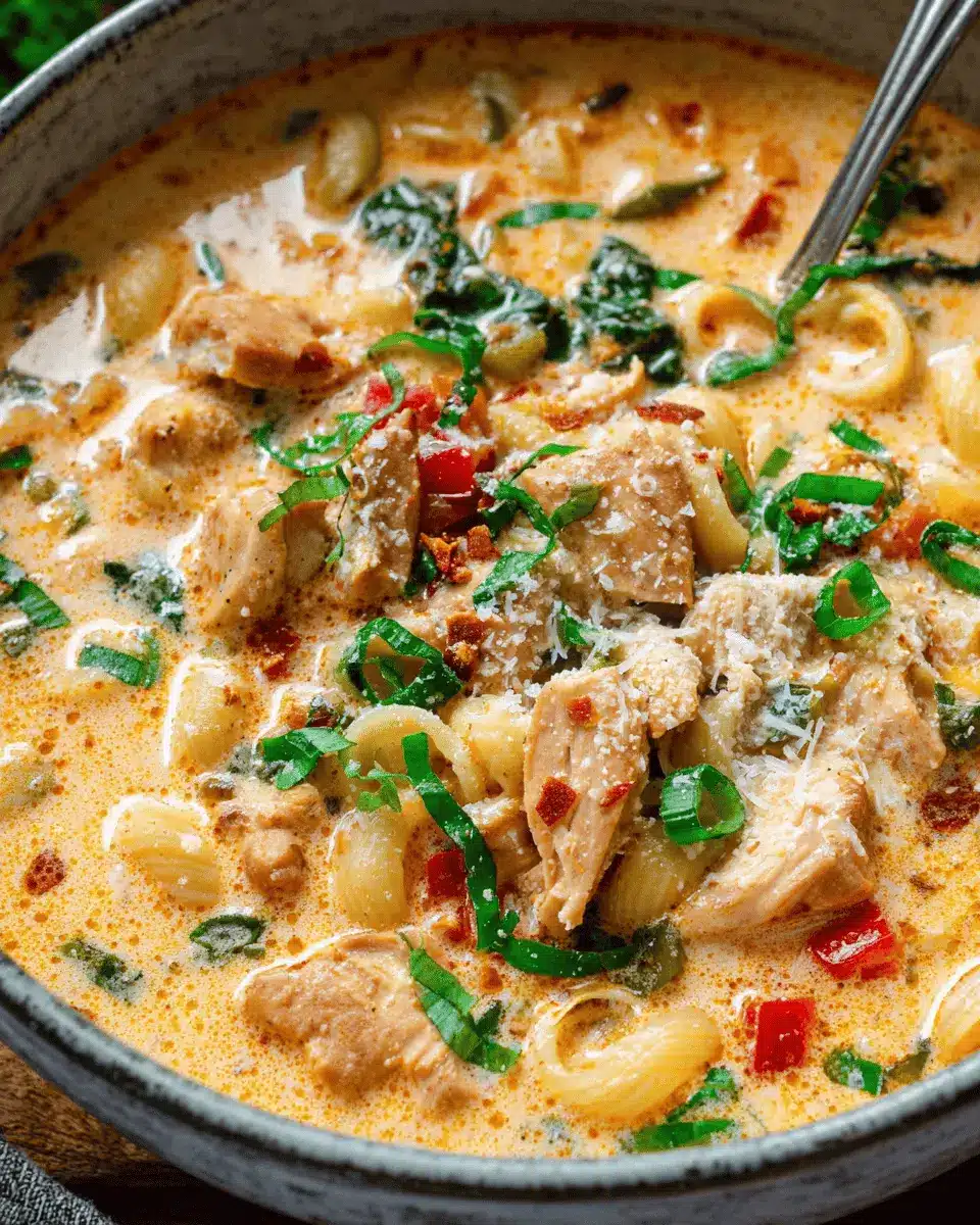 Creamy Parmesan Cajun Chicken Pasta Soup