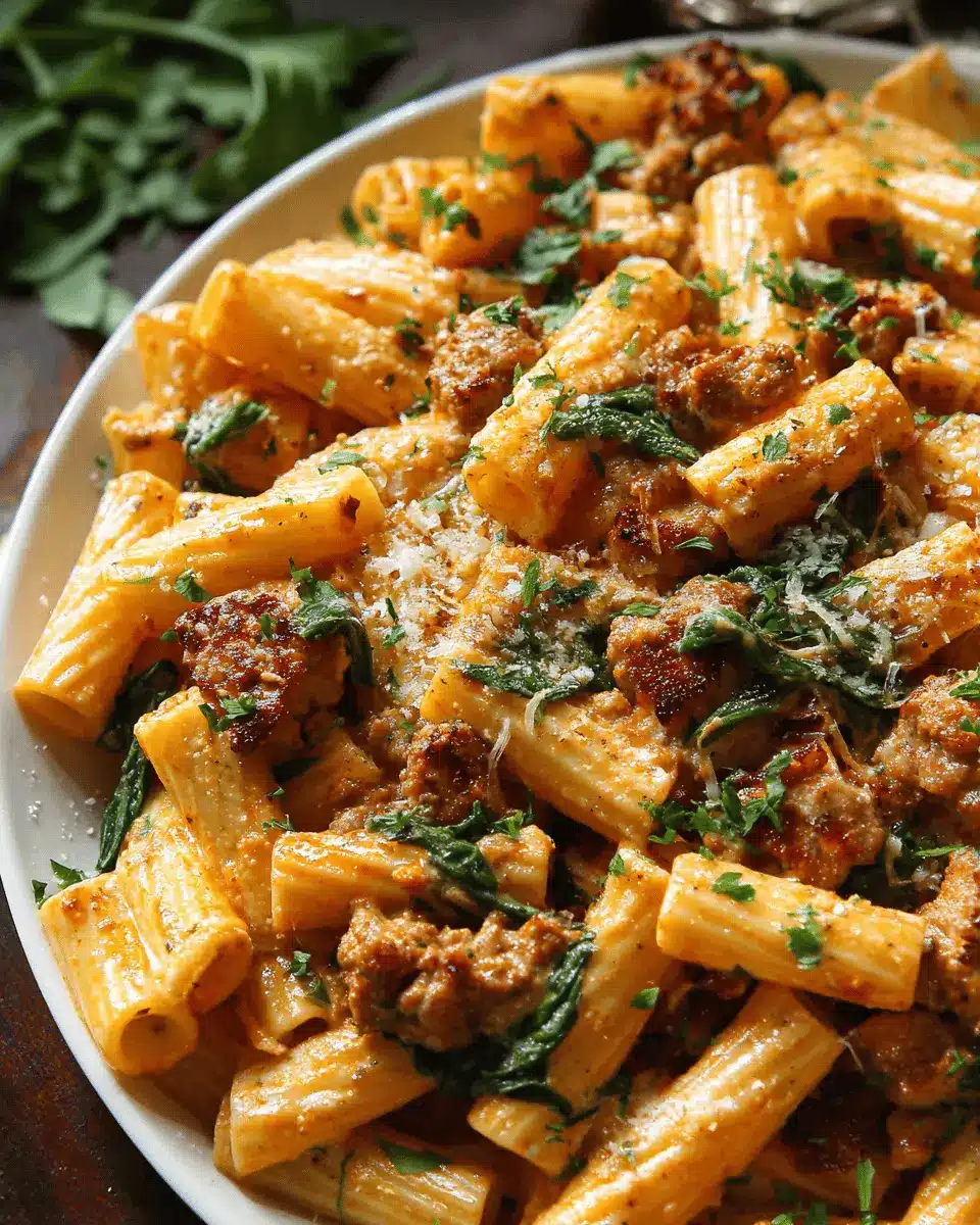 Leftovers of your creamy sausage rigatoni can be stored in an airtight container in the refrigerator for up to four days. Make sure to reheat it gently on the stove or in the microwave. If you find that the sauce has thickened too much, adding a splash of chicken broth or water can help bring it back to that creamy consistency.