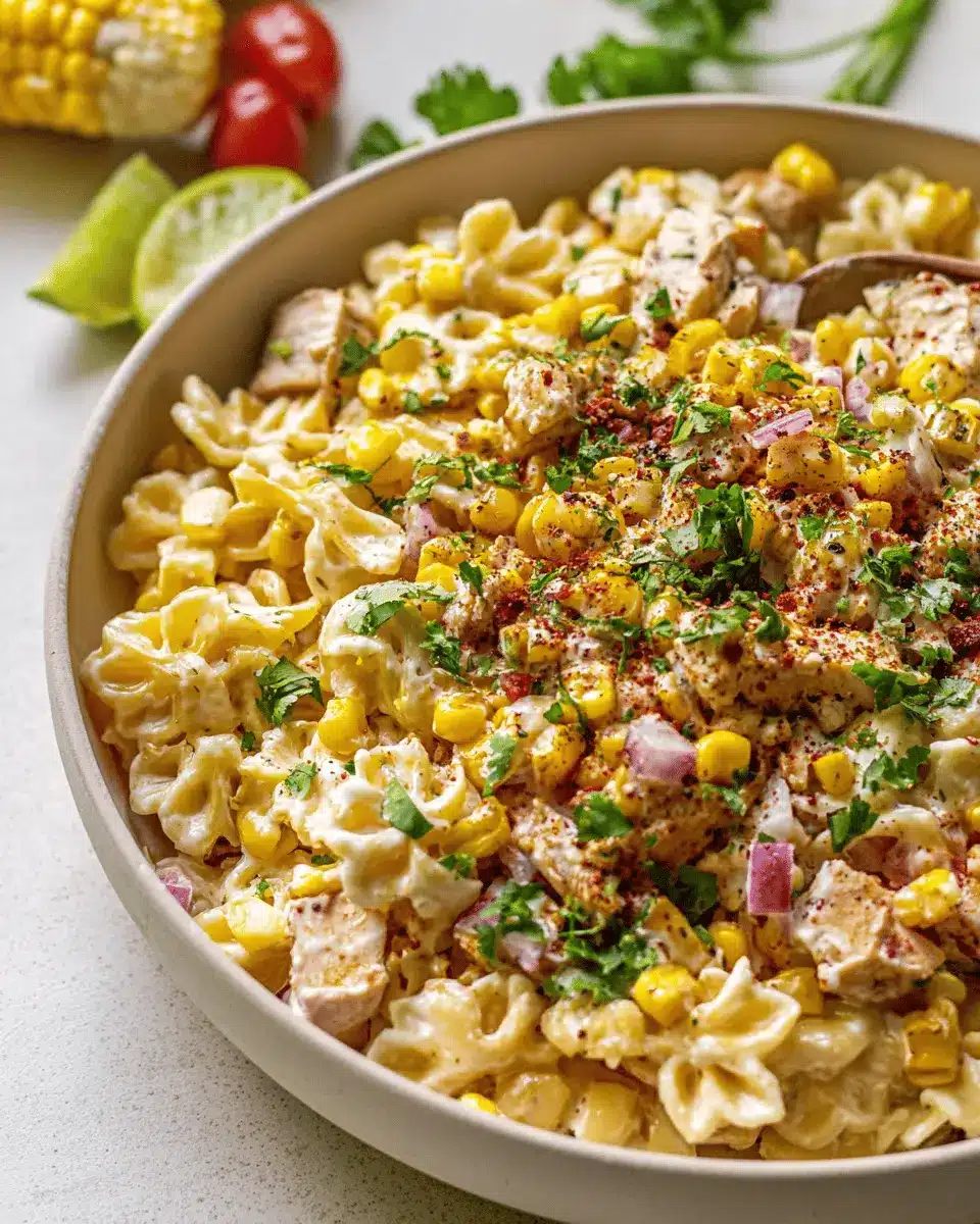 Creamy Street Corn Pasta Salad (w/ Chicken)