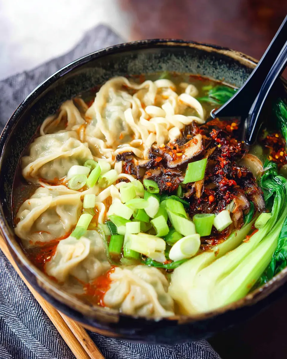 Spicy Dumpling Noodle Soup with Chili Oil