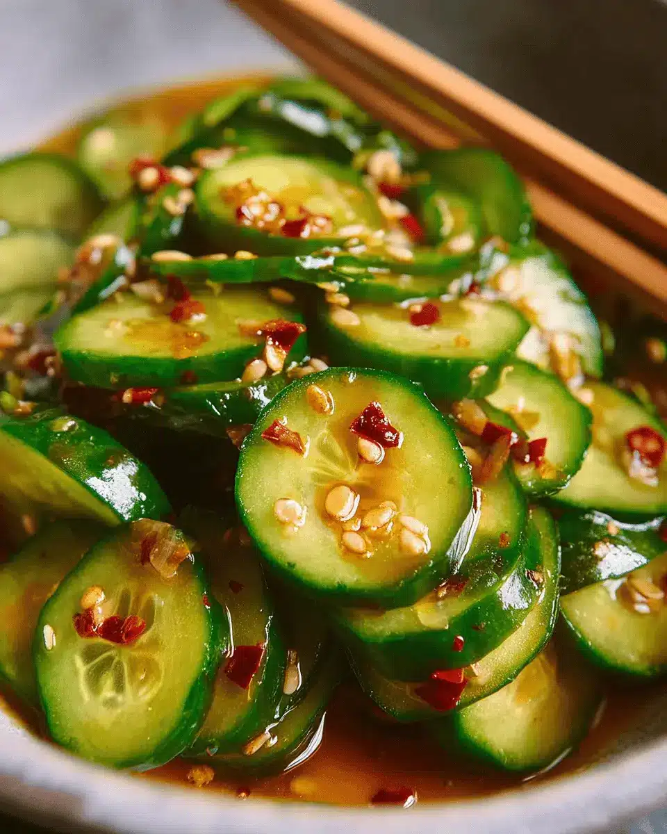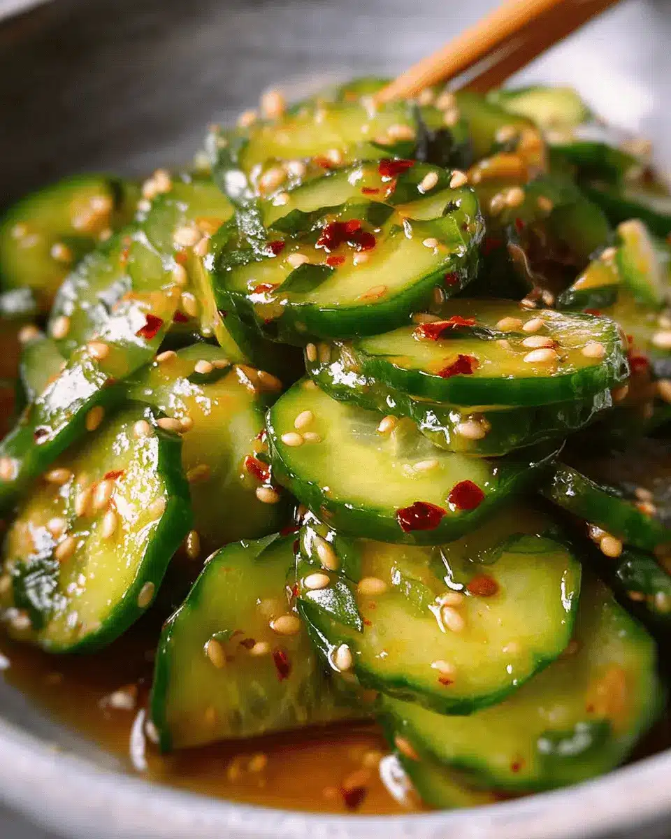 Presentation is key when serving your easy Asian cucumber salad. Elevate your dish by serving it in a colorful bowl topped with fresh herbs like cilantro or mint. Alternatively, scoop it into individual lettuce cups for a fun, hand-held option. For added flair, sprinkle a few chili flakes on top or place sesame seeds in a small dish alongside. This not only adds texture but invites your guests to customize their servings!