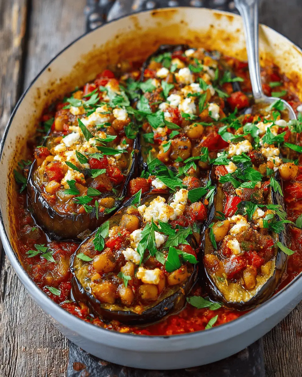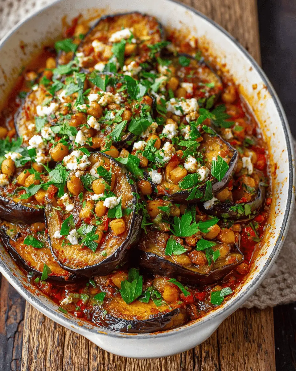 Get creative and transform your eggplant dish into a vibrant entrée! Use it as a filling for stuffed peppers or serve it over a bed of quinoa for a hearty meal. It's also fantastic as a filling for a grain bowl, topped with your favorite roasted vegetables. Don’t forget to garnish with fresh herbs like parsley or mint to enhance the flavor and presentation. For an easy appetizer, serve it in individual bowls with toasted pita chips. How will you enjoy this tasty dish?