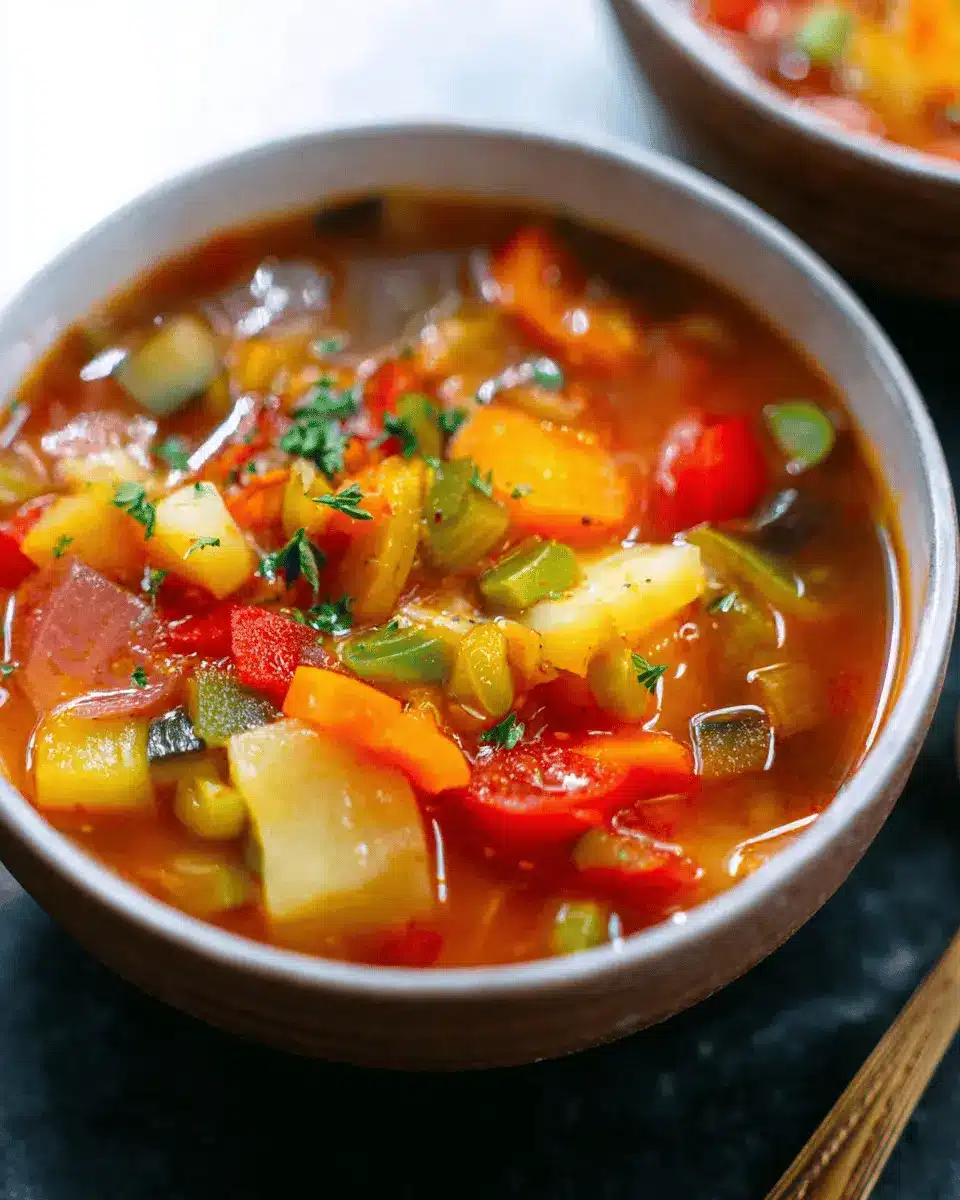 Making this easy vegetable soup at home is rewarding and comforting, perfect for busy weeknights or meal prep. It’s a canvas for seasonal veggies, allowing you to customize flavors to your taste. Give this hearty dish a try and enjoy wholesome goodness in every bowl.