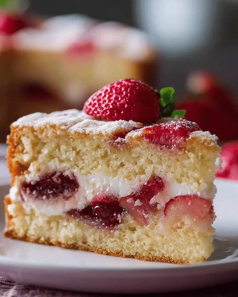 Now you have a delightful French Strawberry Cake ready to be sliced and enjoyed! Remember to serve with additional strawberries on top for that extra flair. Happy baking!