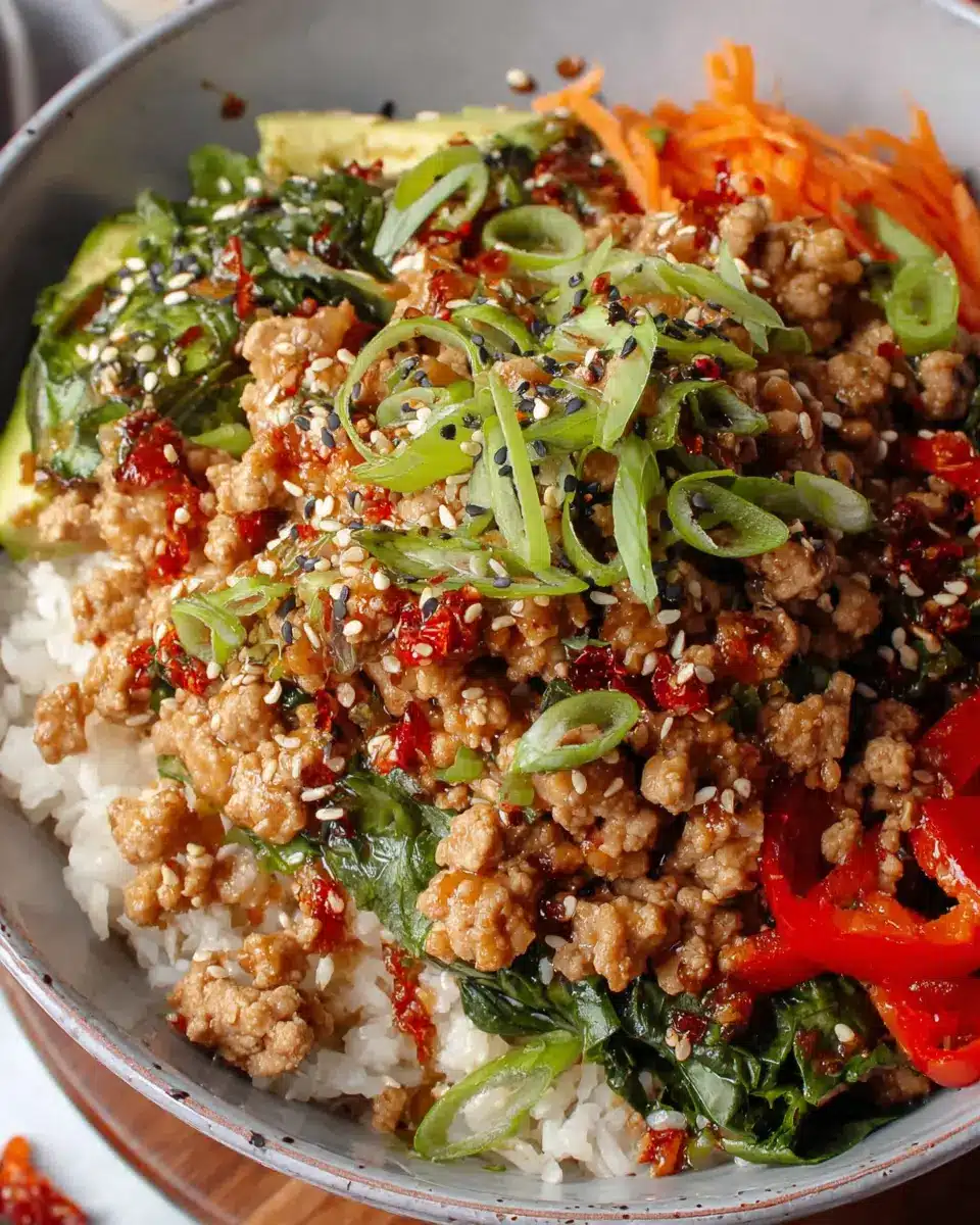 Want to add some heat? You can mix in red pepper flakes or a drizzle of sriracha for that spicy kick. Adding diced jalapeños while cooking the veggies, or topping your bowl with spicy sesame oil, will also give you that extra zing.