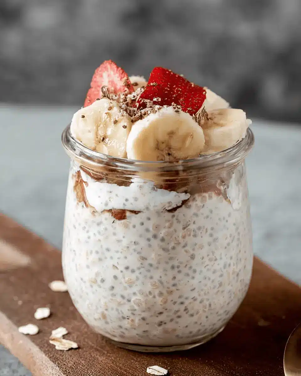 Getting started with this healthy overnight oats recipe is a breeze! You’ll only need about 5 minutes to gather your ingredients and mix everything together. It’s the perfect quick meal prep for a busy morning!