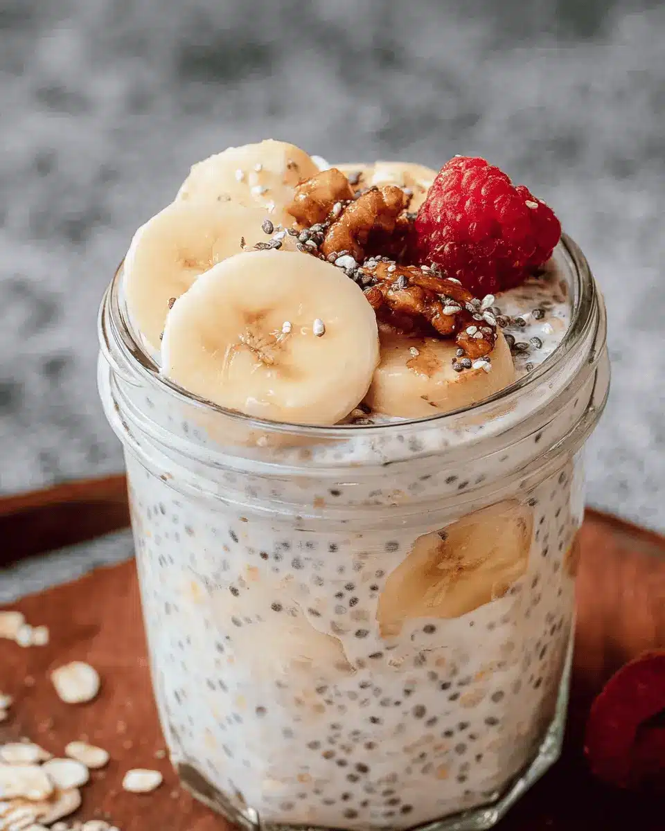 One of the best things about this healthy overnight oats recipe is its versatility. Embrace seasonal fruits to elevate the flavor! During the summer, try fresh strawberries, peaches, or mango, while fall is perfect for apples and pears. Simply swap the banana in the original recipe with your favorite seasonal picks. Not only do these fruits add natural sweetness, but they also boost your intake of vitamins and antioxidants, making your breakfast even healthier.