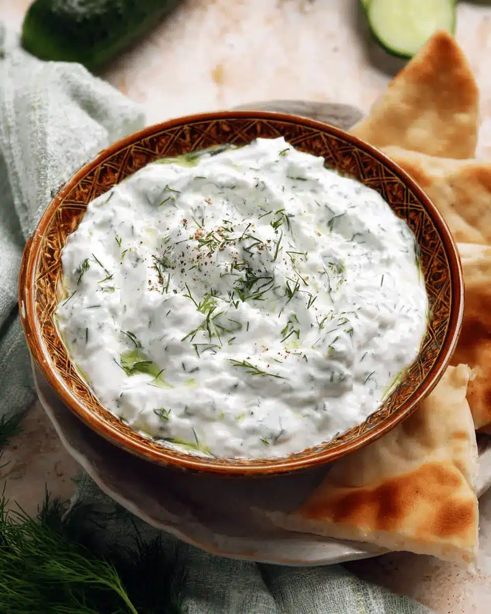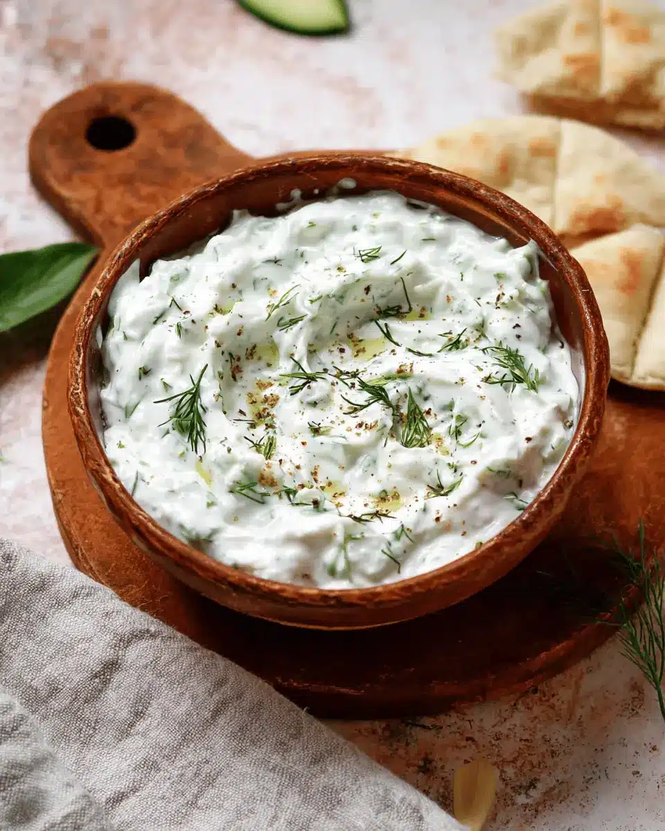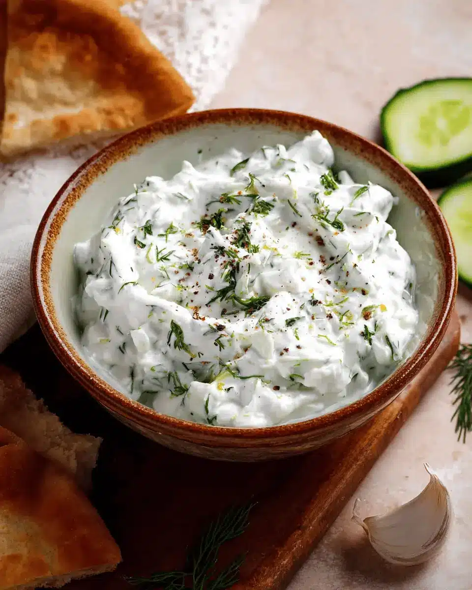 Don’t skip out on the fresh dill! Its aromatic profile brightens the tzatziki, making every bite refreshing. Lemon juice contributes a zesty tang, while minced garlic enhances depth—perfect for a dip that complements grilled veggies or chicken.