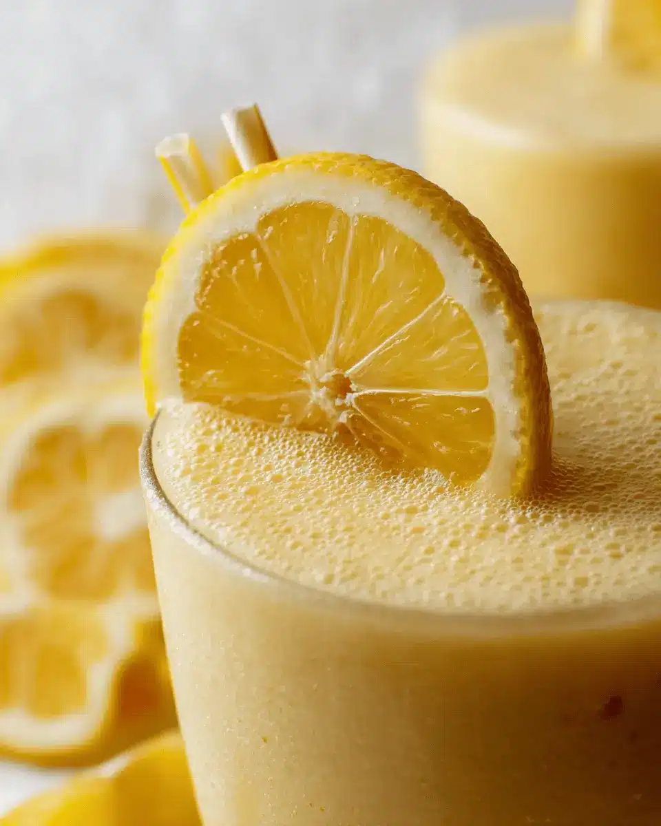 Looking for a revitalizing afternoon pick-me-up or a light dessert? This lemon smoothie fits the bill perfectly! Its zesty flavor is invigorating, making it a wonderful alternative to heavier sweets. Serve it with a sprinkling of granola or fresh herbs like mint for extra flair and texture. You could also enjoy it alongside a handful of nuts for a balanced snack.