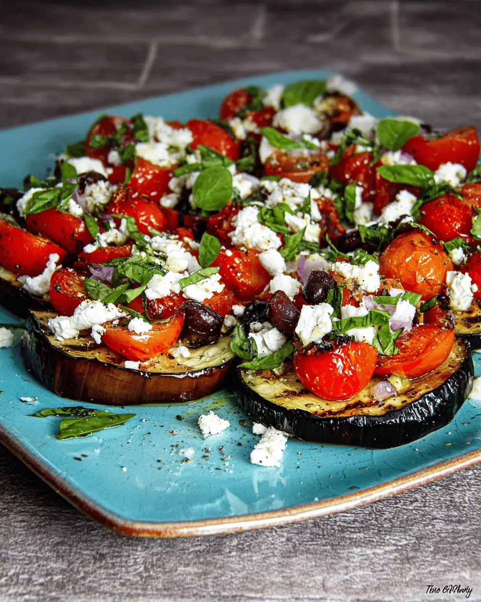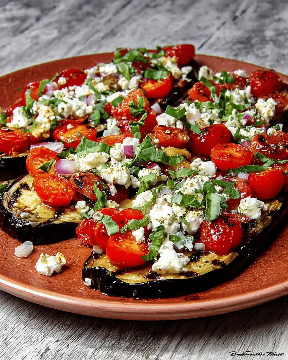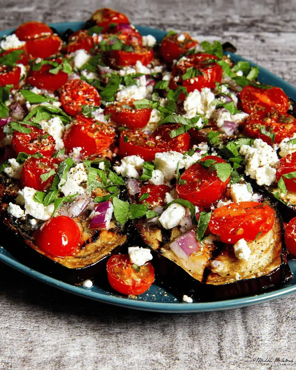 Mediterranean Grilled Eggplant with Tomatoes and Feta