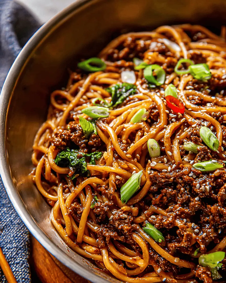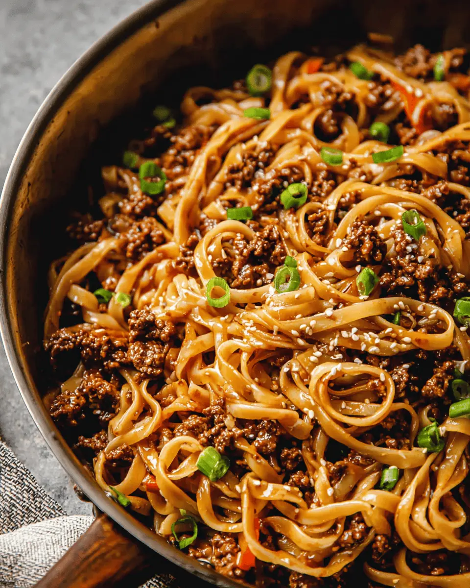 In just 20 minutes, you’ll have a delicious plate of Mongolian ground beef noodles. Ideal for when you're short on time but craving something satisfying!