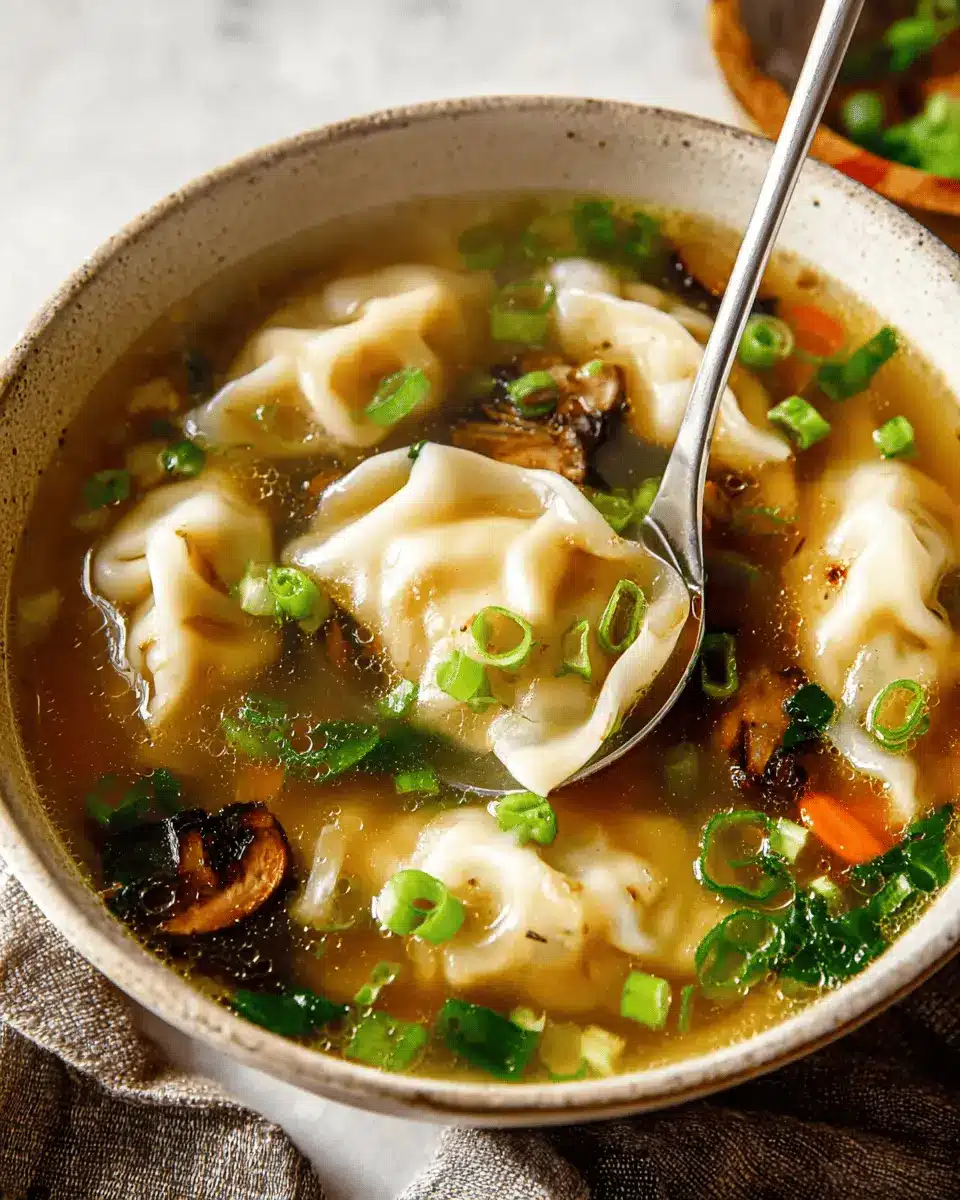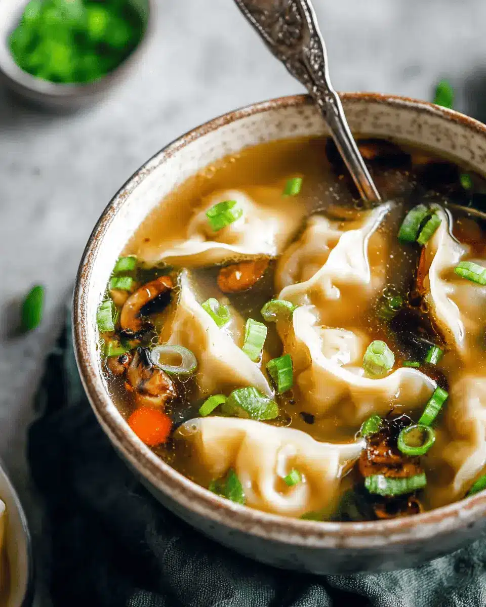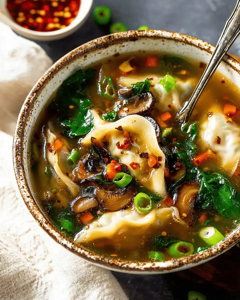 To elevate presentation, serve the potsticker soup in vibrant, deep bowls that contrast with the rich broth. A sprinkle of scallion greens and a dash of chili crisp on top not only add color but also create an inviting look. Finish with fresh herbs like cilantro or Thai basil for a pop of freshness.