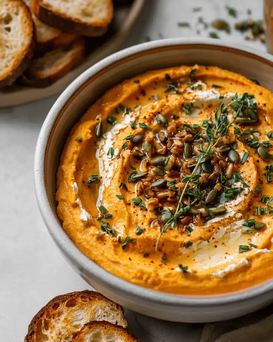 Craving something a little sweeter? You can turn your pumpkin whipped feta dip into a delightful dessert spread! Try incorporating maple syrup instead of honey for a cozy twist, or add a pinch of cinnamon and nutmeg for that classic fall flavor. For an added crunch, mix in some toasted pecans or sprinkle with pomegranate seeds. These variations are perfect for pairing with apple slices, graham crackers, or even sweet pita chips.