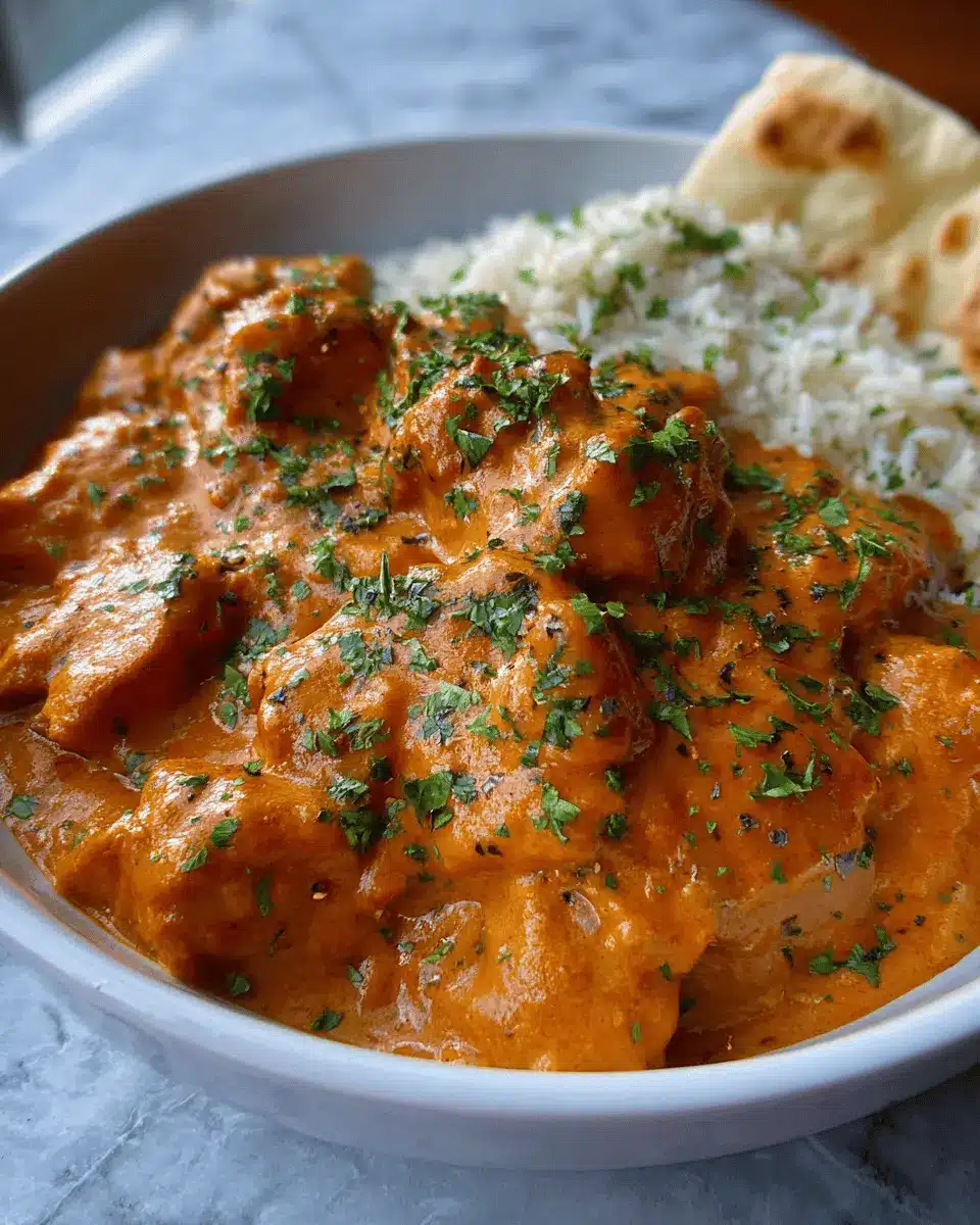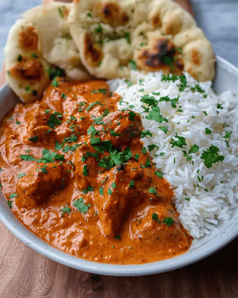 Finally, serve your butter chicken hot alongside warm naan bread and fluffy rice. This dish is perfect for sharing with loved ones—imagine the smiles on their faces as they dig into this creamy, flavorful delight! Don’t forget to check out more recipe ideas to complement your meal! Enjoy your creation and happy cooking!