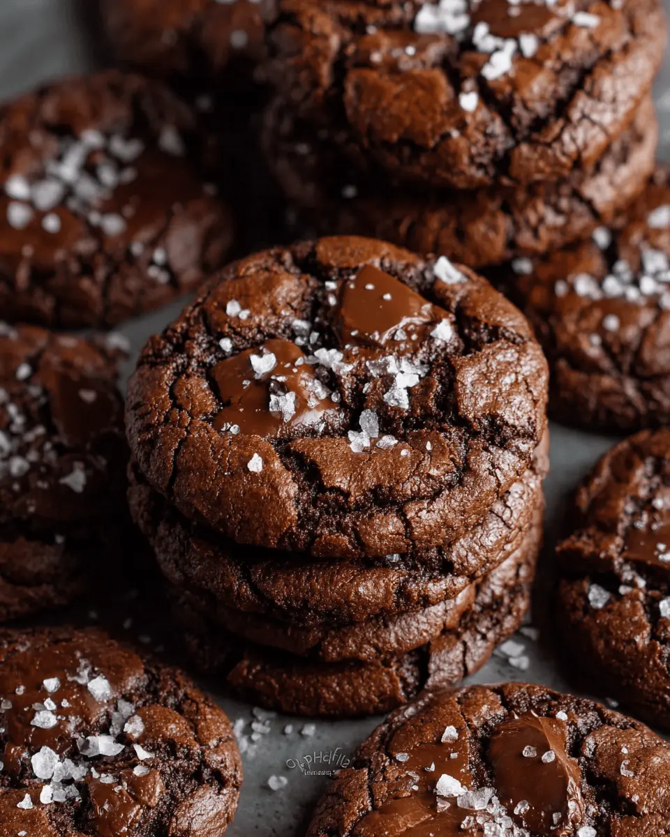 The magic of these cookies lies in their shiny, crackly tops, hinting at that gooey, decadent center just waiting to be enjoyed. Pair that with the savory pop of sea salt flakes on top, and you've got a dessert that's practically calling your name. Have you ever experienced that blissful contrast of sweet and salty? It’s a flavor combination that takes each bite to the next level.