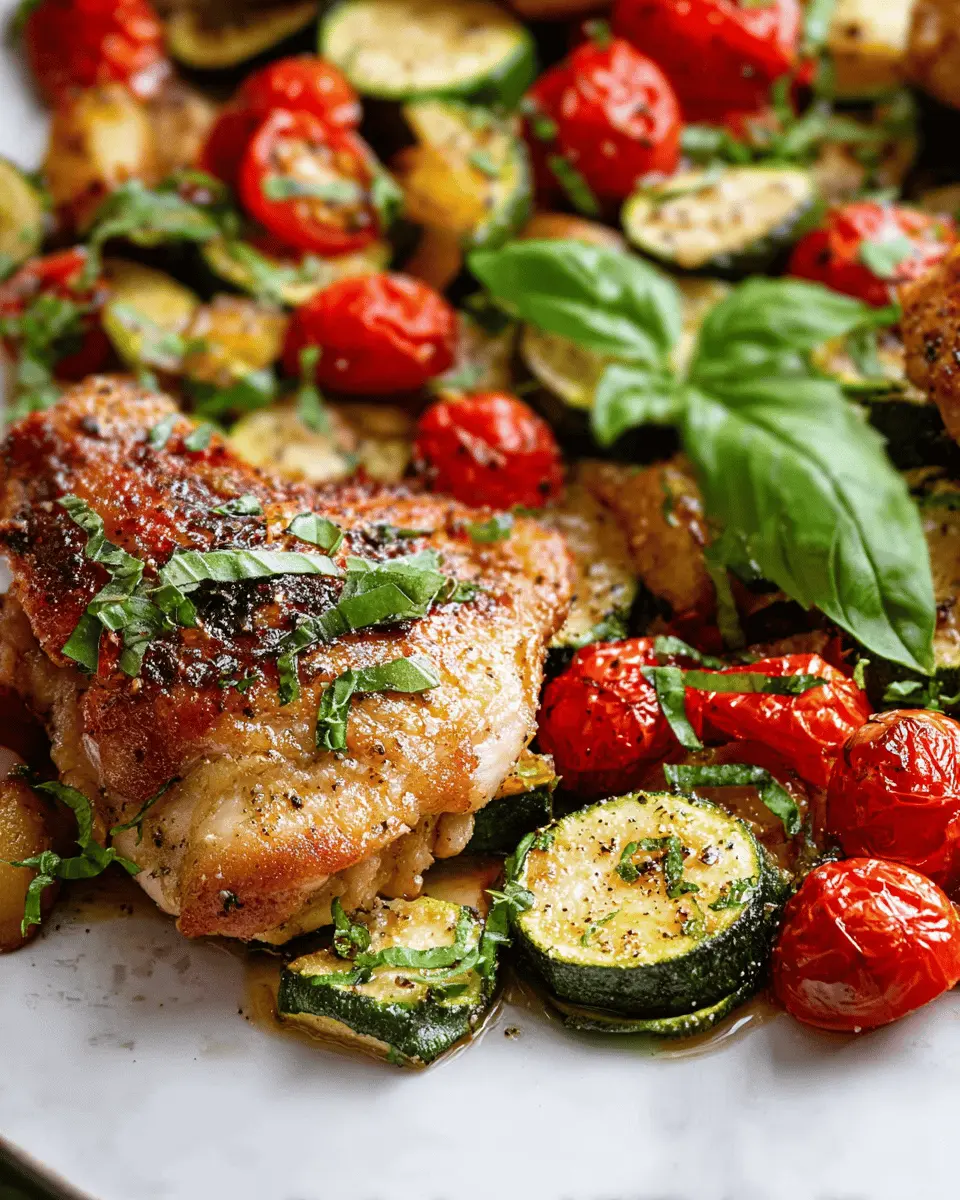 In summary, this Sheet Pan Chicken with Zucchini, Tomatoes, and Basil is not only a breeze to prepare but also a delightful explosion of summer flavors. Perfect for busy weeknights, it brings together easy cooking and nutritious ingredients. Enjoy the simplicity and make it your go-to dinner!