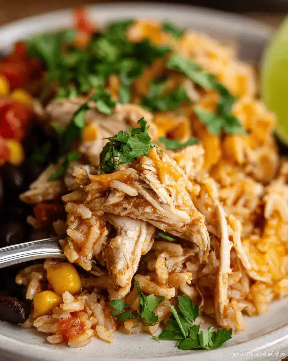 After the cooking time is up, carefully remove the chicken breasts from the pot. Use two forks to shred the chicken — it should pull apart easily. Returning the shredded chicken back into the crock pot ensures it mixes well with the other ingredients, providing a hearty consistency throughout your Southwest Crock Pot Chicken and Rice.