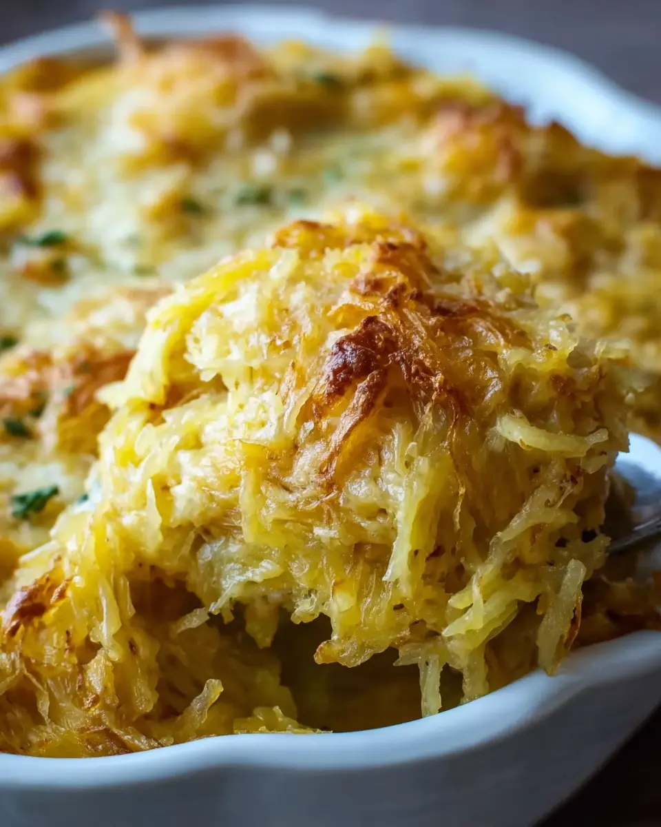 Spaghetti squash au gratin is a delectable, hearty dish that offers a lower-calorie twist on comfort food. Packed with flavor and nutrition, it's an excellent way to incorporate more vegetables into your meals. Give it a try—you’re sure to impress your family and enjoy this healthy alternative!