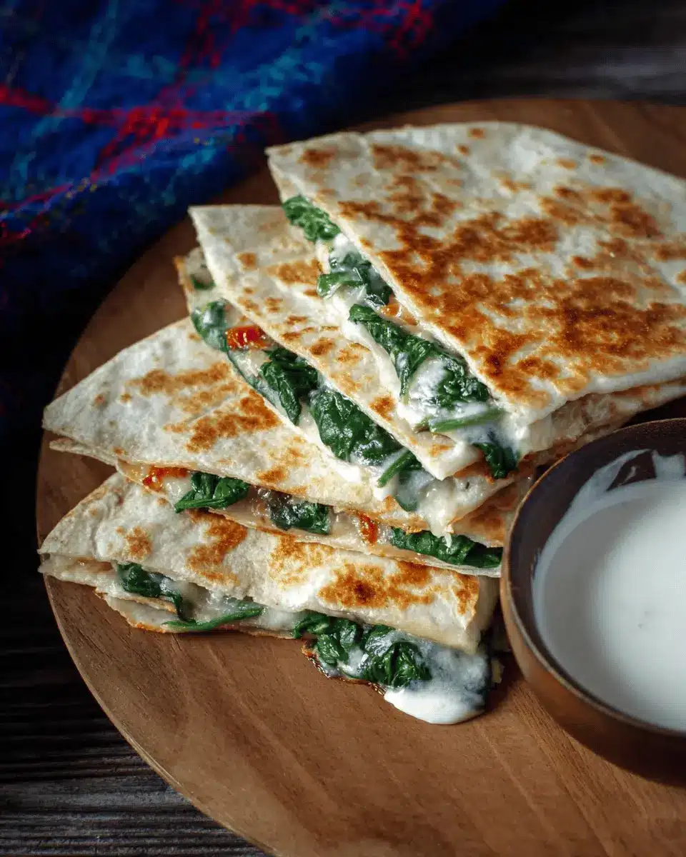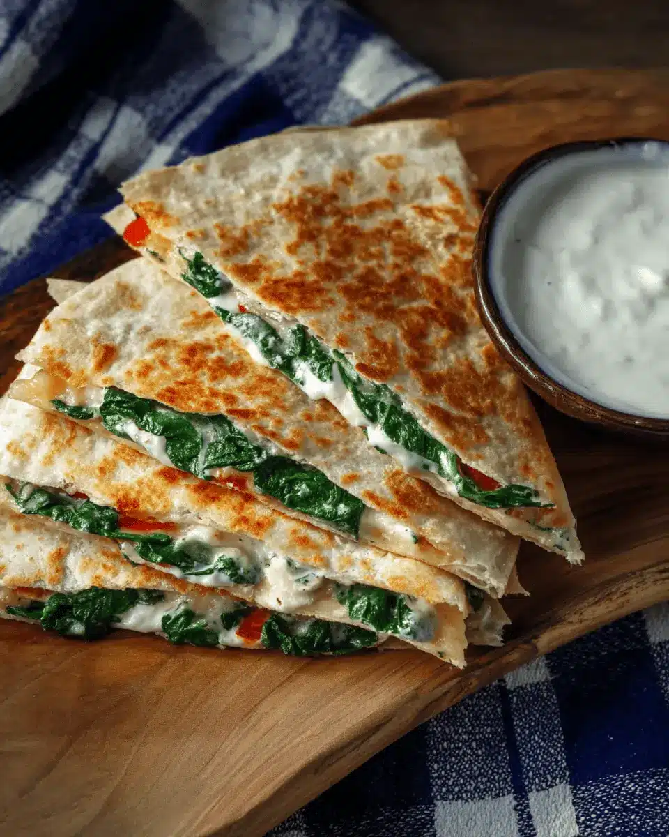Spinach Quesadilla with Feta and Pepper Jack Cheese