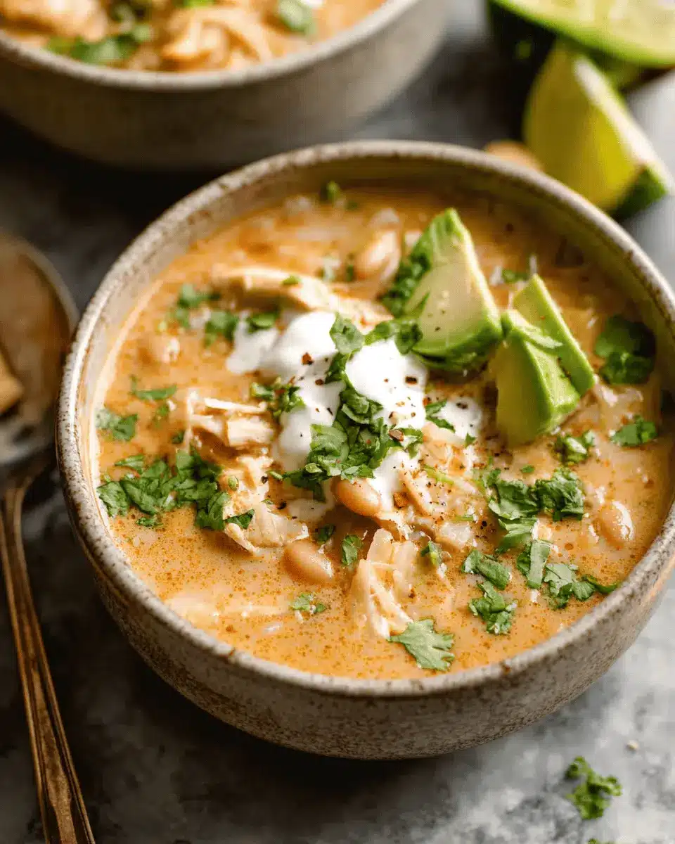 Storing leftovers is super simple! Keep your white chicken chili in an airtight container in the fridge for about 3-4 days. For longer storage, you can freeze it for up to three months. Just make sure to wait to add sour cream until you reheat it, as it may not freeze well. Reheat on the stovetop or in the microwave, adding some broth if necessary to maintain creaminess.