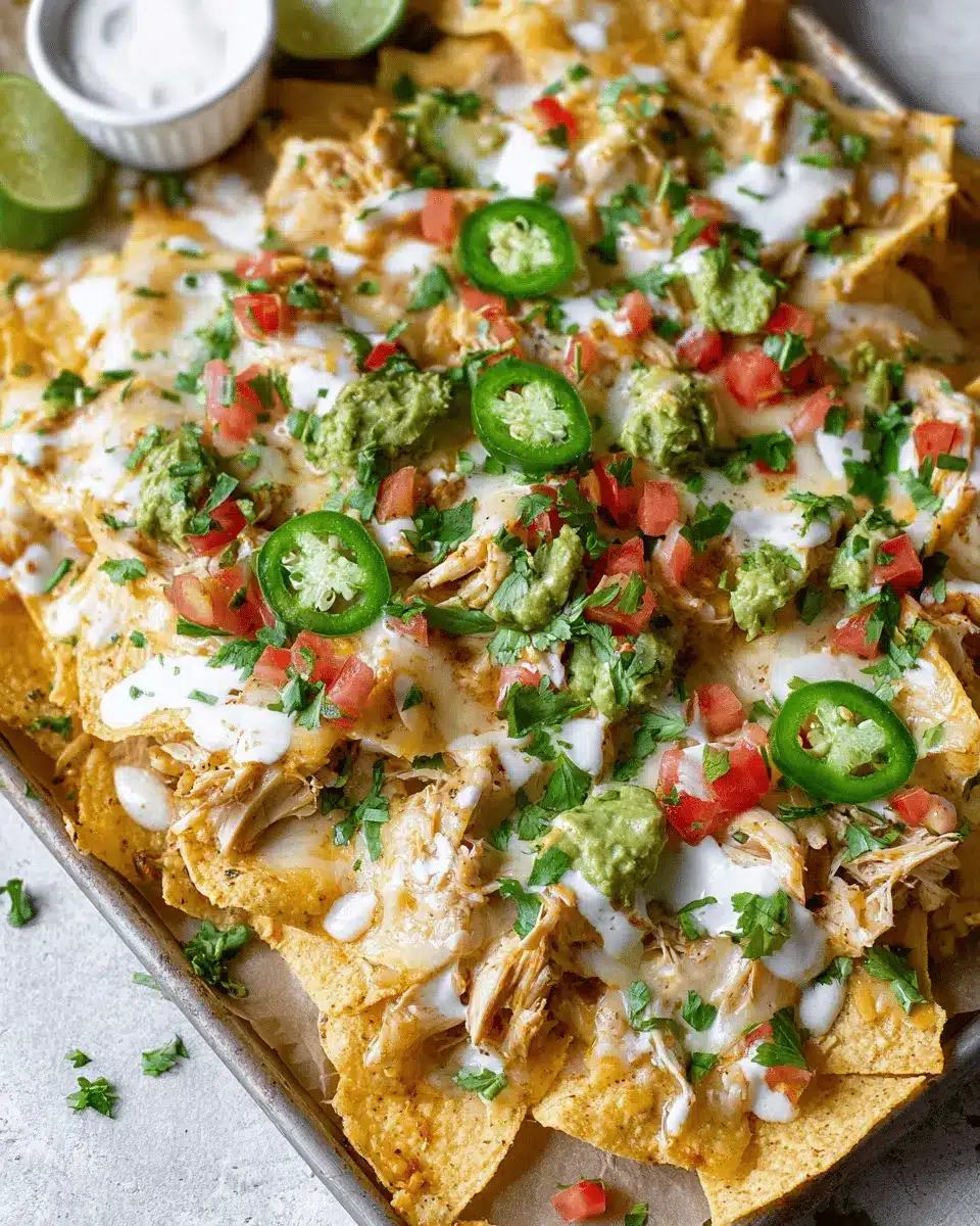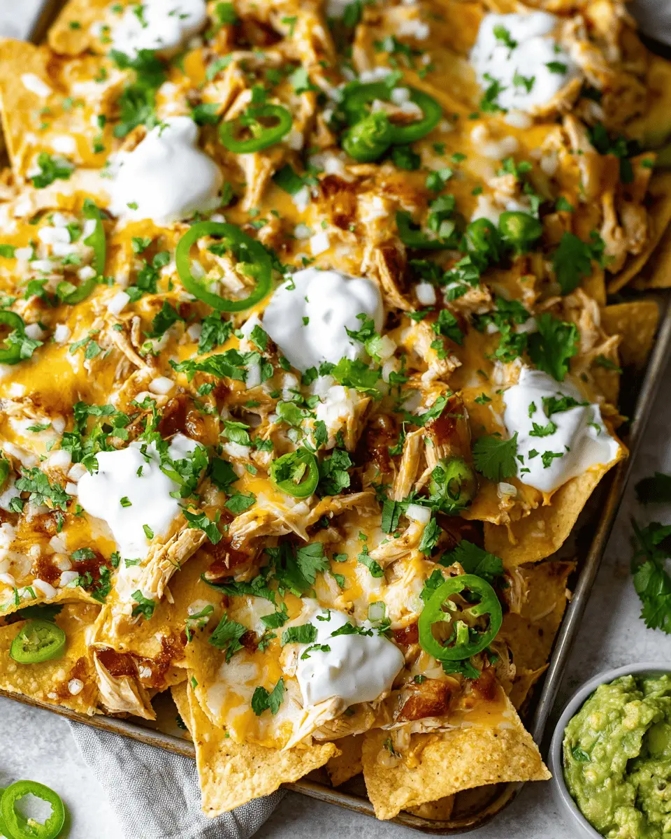 These nachos are perfect for any occasion, from lively game days to cozy movie nights. The best part? They’re surprisingly easy to whip up! You can use a store-bought rotisserie chicken to save on prep time, making this dish not only delicious but also incredibly convenient. Plus, the array of toppings like fresh avocado, scallions, and cilantro turns it into a customizable feast that you and your friends will love.